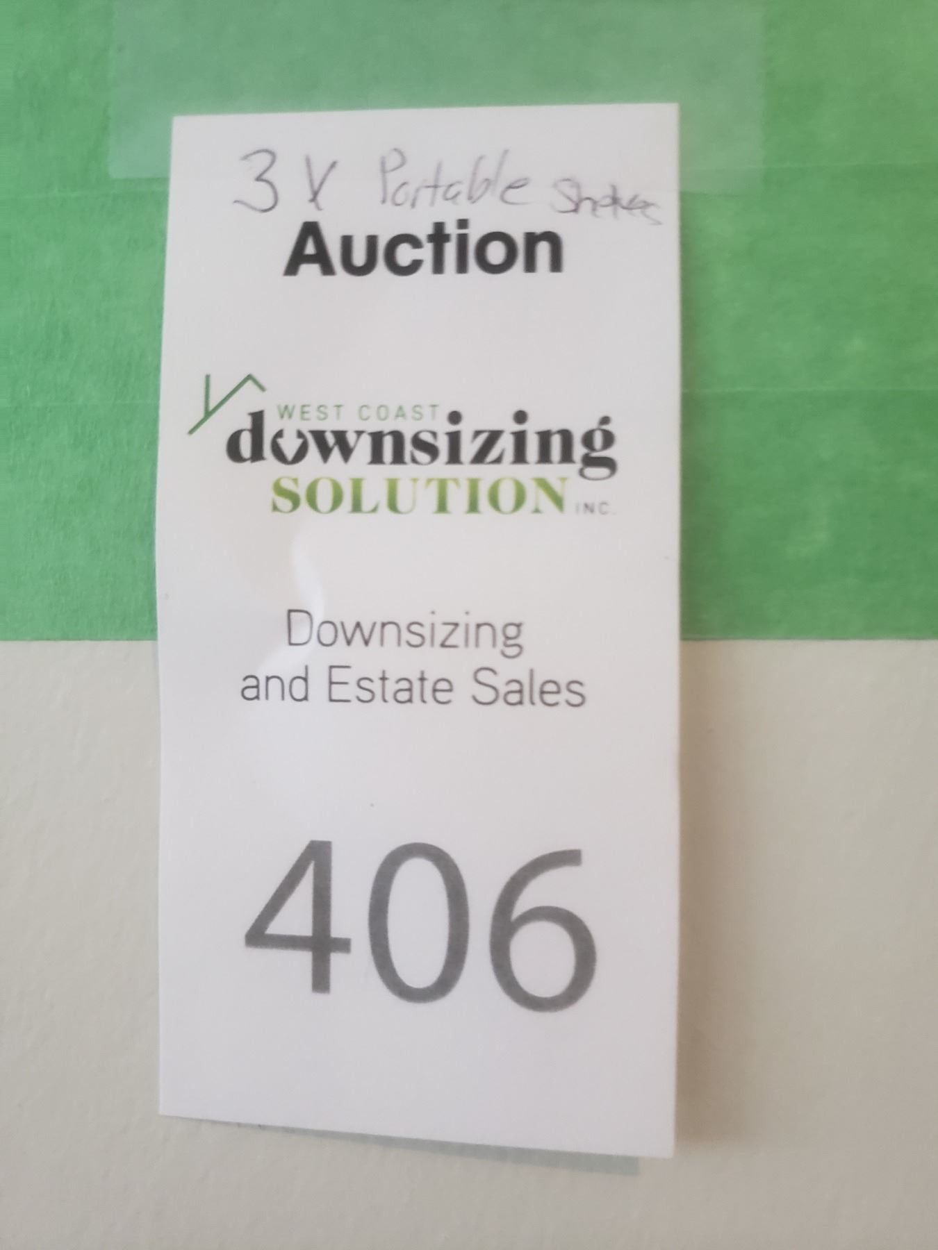 3 Plastic Portable Shelving, easy to take down & set up. Contents not included. Shelving only. Bring packing material and pickup 11:00 am - 12:00 pm