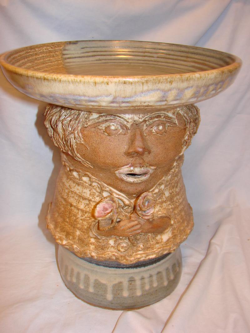 Pottery Bird Bath/Feeder, apprx. 13" tall