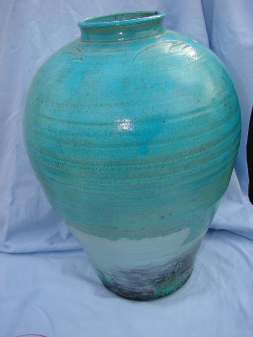 Pottery vase signed RB, apprx. 16" tall, great detail & color