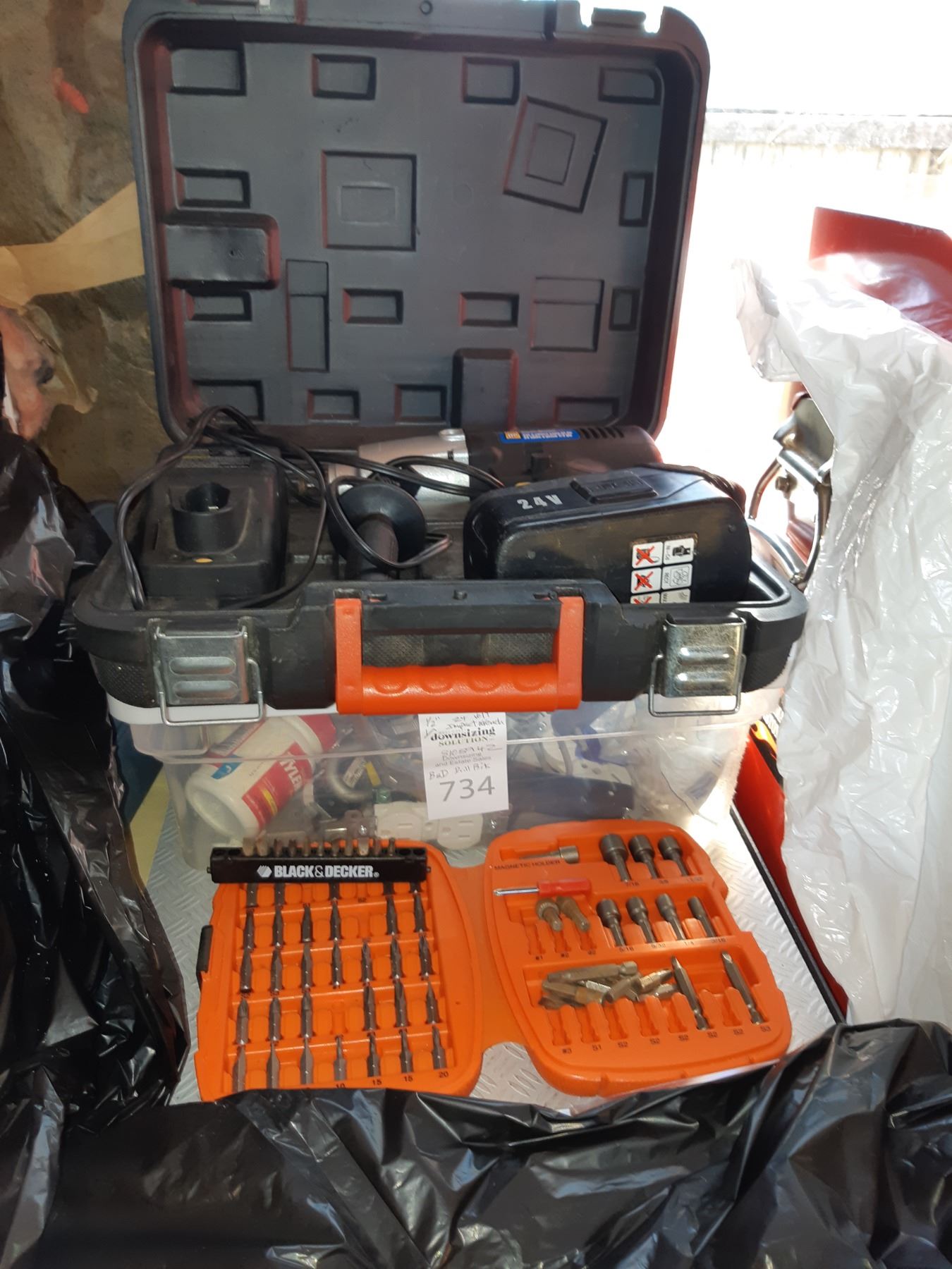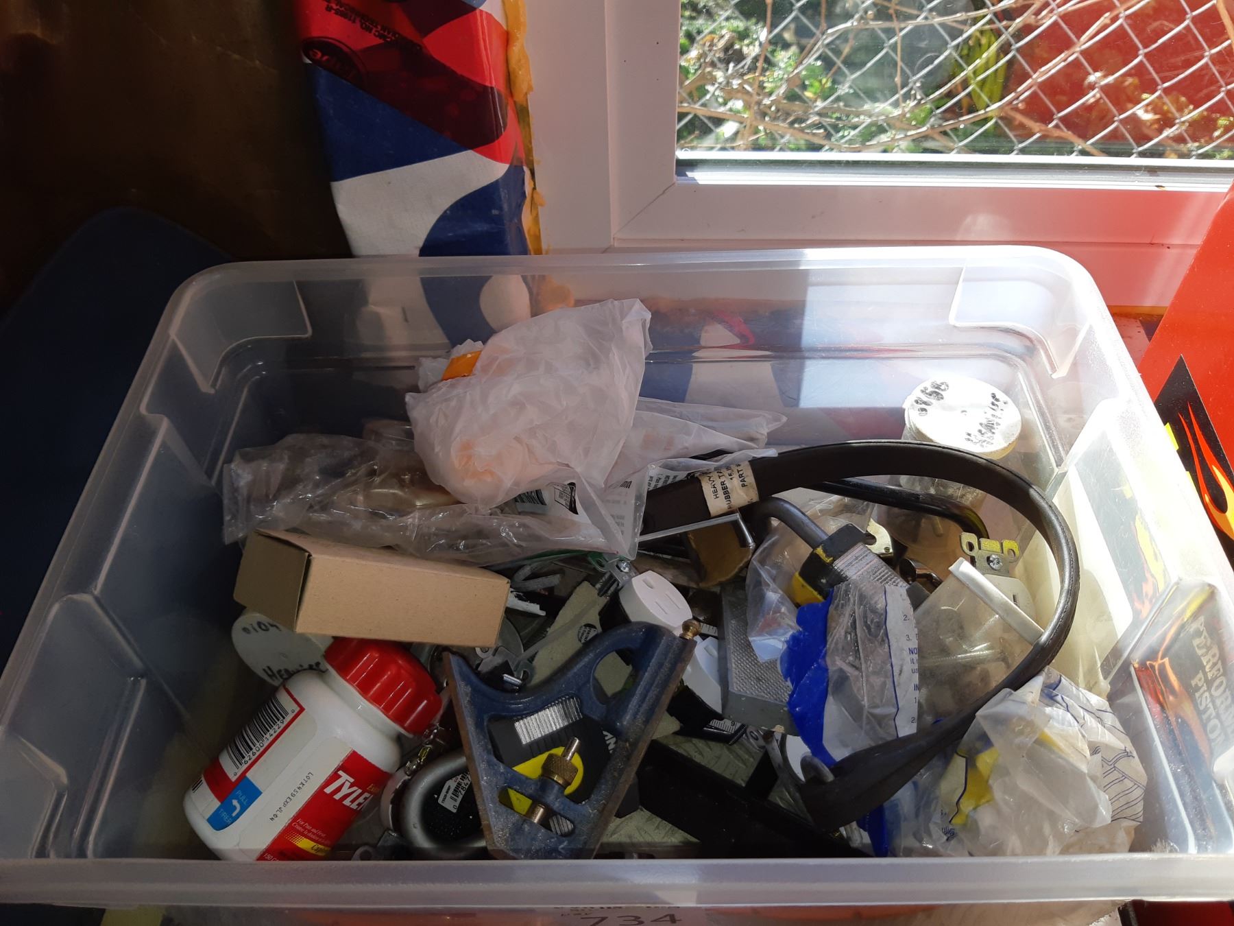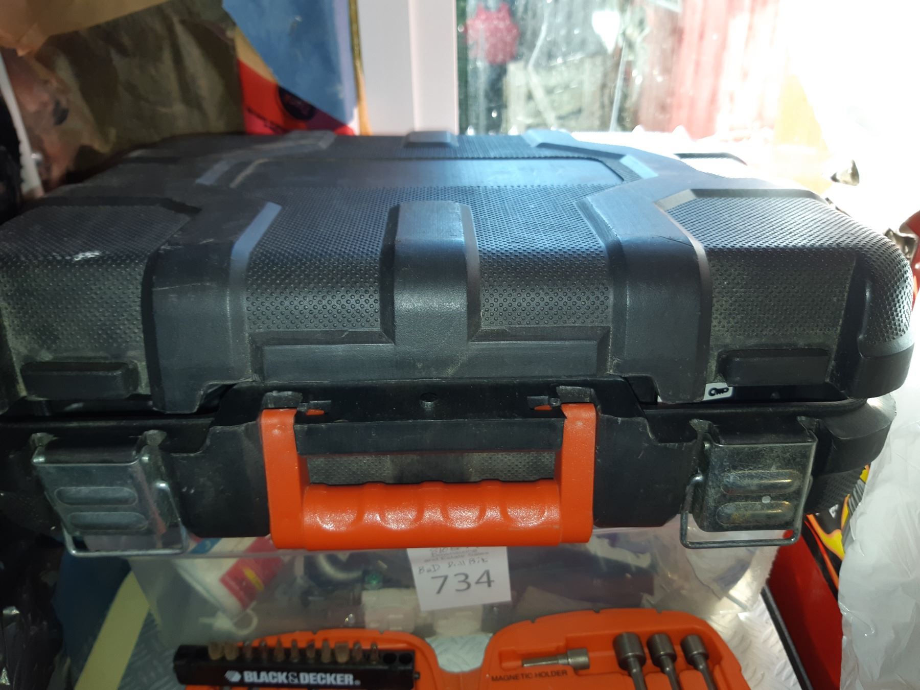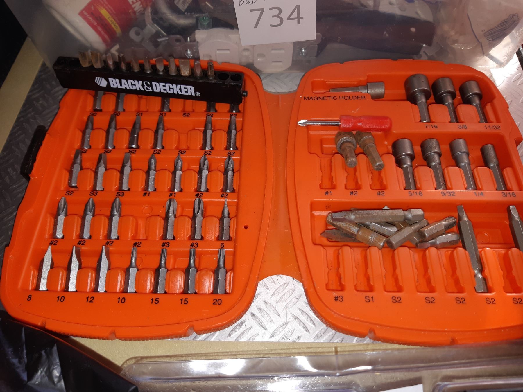 Power Fist 1/2” impact wrench in case, B&D drill bits, and small parts. Pickup at 9 - 11 am