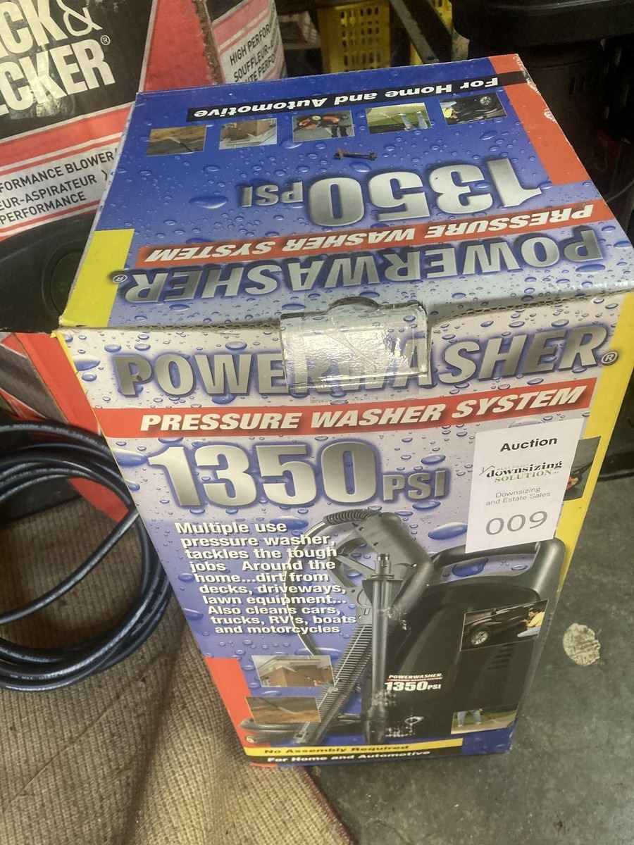 Power washer system 1350psi, no assembly required. Adjustable spray nozzle, 19ft hose. Pickup 11 am