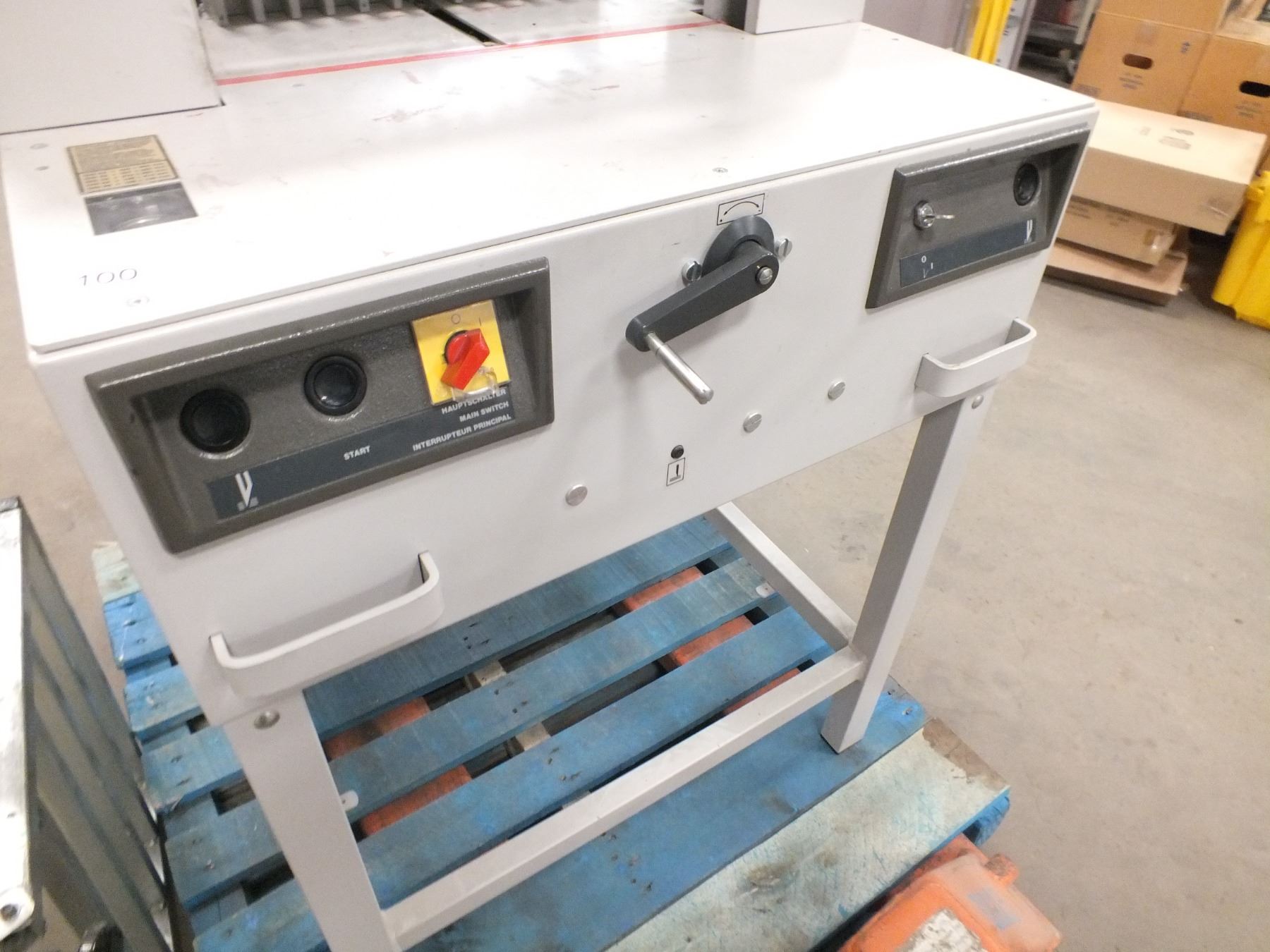 Powered Paper Cutting Machine, Triumph 4810 A, comes with a paper jogger, in working condition...used