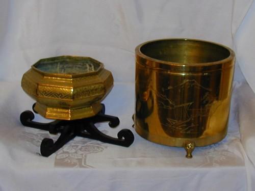 (2 pcs) Antique Brass Planter on Pedestal & Oriental Brass Footed Planter