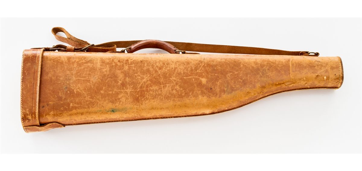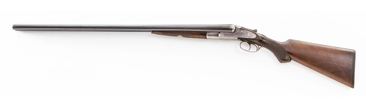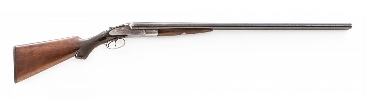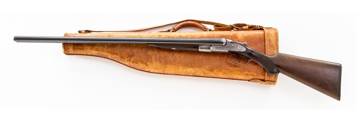 Pre-Ithaca LeFever H Grade Side-by-Side Shotgun, #67276, 12 ga., 30'' blue game rib barrels choked Full/Full, case colored frame and sidelocks, checkered pistol-grip walnut stock and splinter forend. Sideplates marked ''LeFever Arms Co./Syracuse, NY USA''. Shotgun features side-mounted cocking indicators, auto safety, and extractors. Length of pull is 14'' with 2-3/4'' drop. In leg of mutton case, Model 605 for 30'' barrels. Condition is very good retaining approx. 85%-90% thinning blue to barrels with mild corrosion. Frame retains 35% thinning case colors with most of the losses at the balance point. Stock with just moderate flattening to checks and some scuffs and scratches. Auto safety partially engages and should be checked by a competent gunsmith. Action remains crisp, bores are mirror bright. Case with moderate overall scuffing, more pronounced near muzzle area; stitches are good, straps and buckles are tight. Est.: $1,000-$1,500. (C&R)
