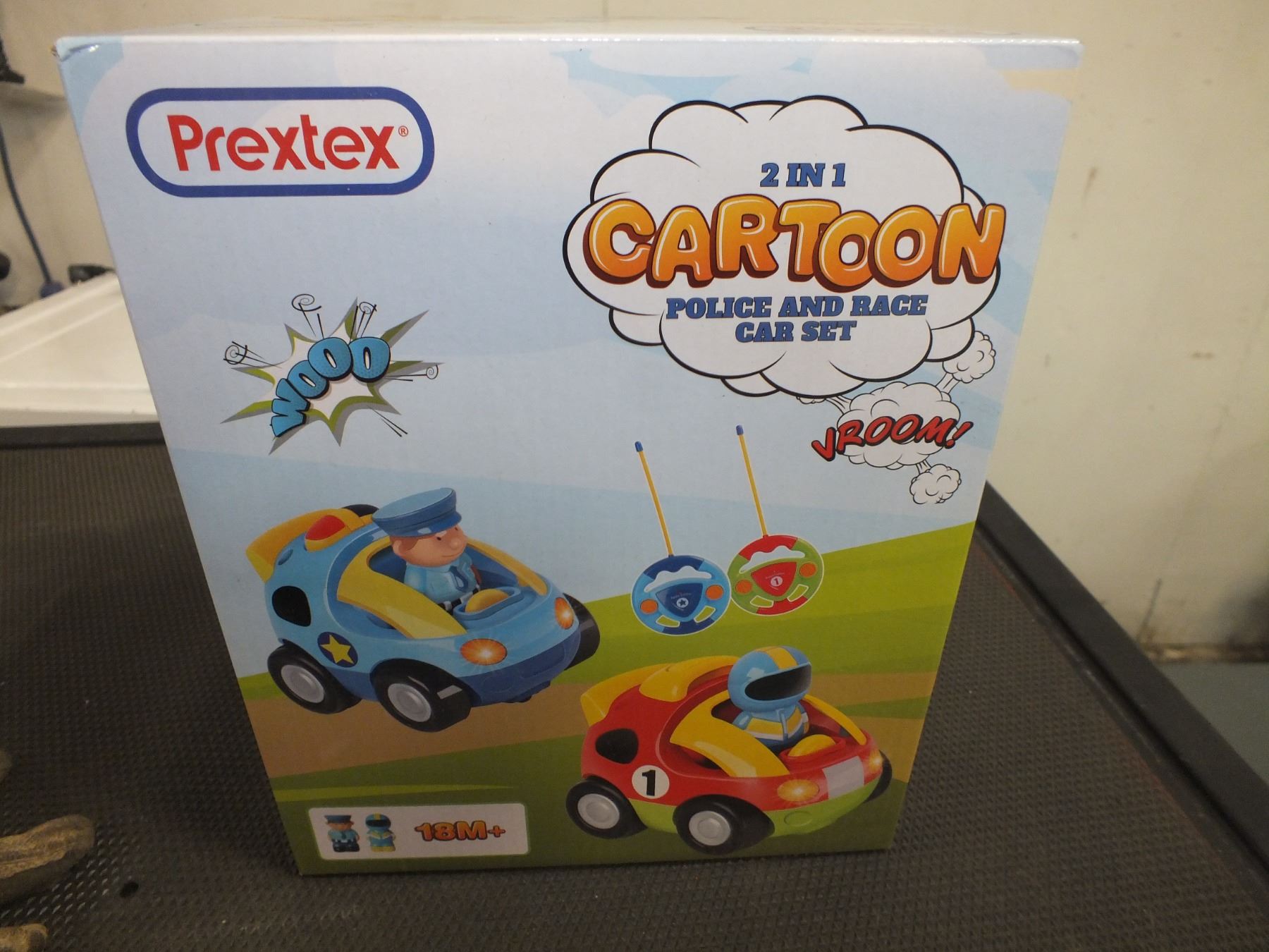 Prextex 2 in 1 Cartoon Police & Race Car Set...store returns...sold as is...new