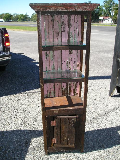 3 shelf cabinet, w/2 glass shelves, lower storage.