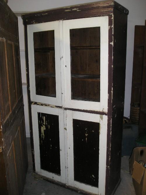 This brown and white hutch measures 37"W x 16"D x 74"H and has one pain of glass missing.