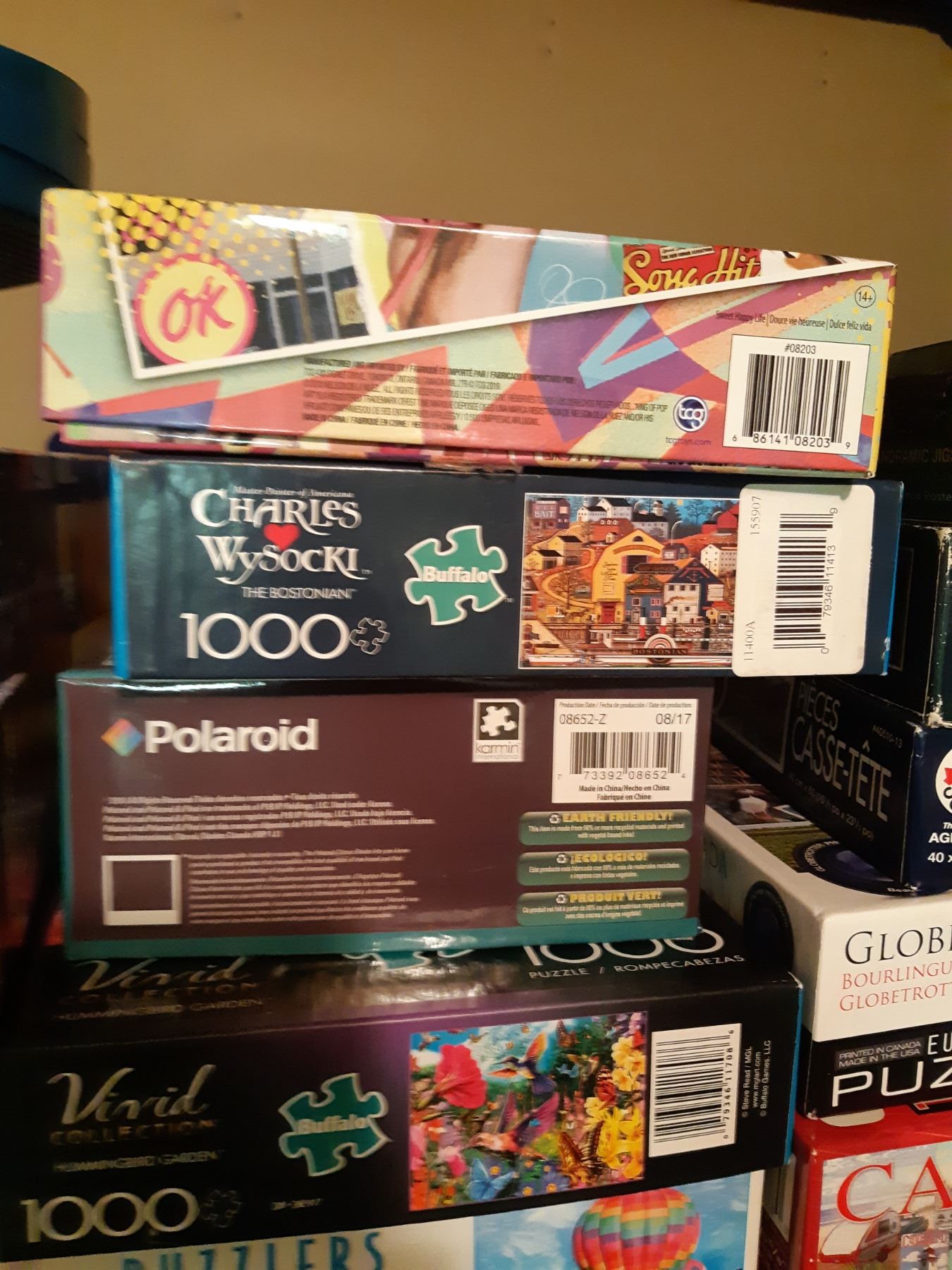 Assortment of puzzles Bring packing and pickup at 10 am