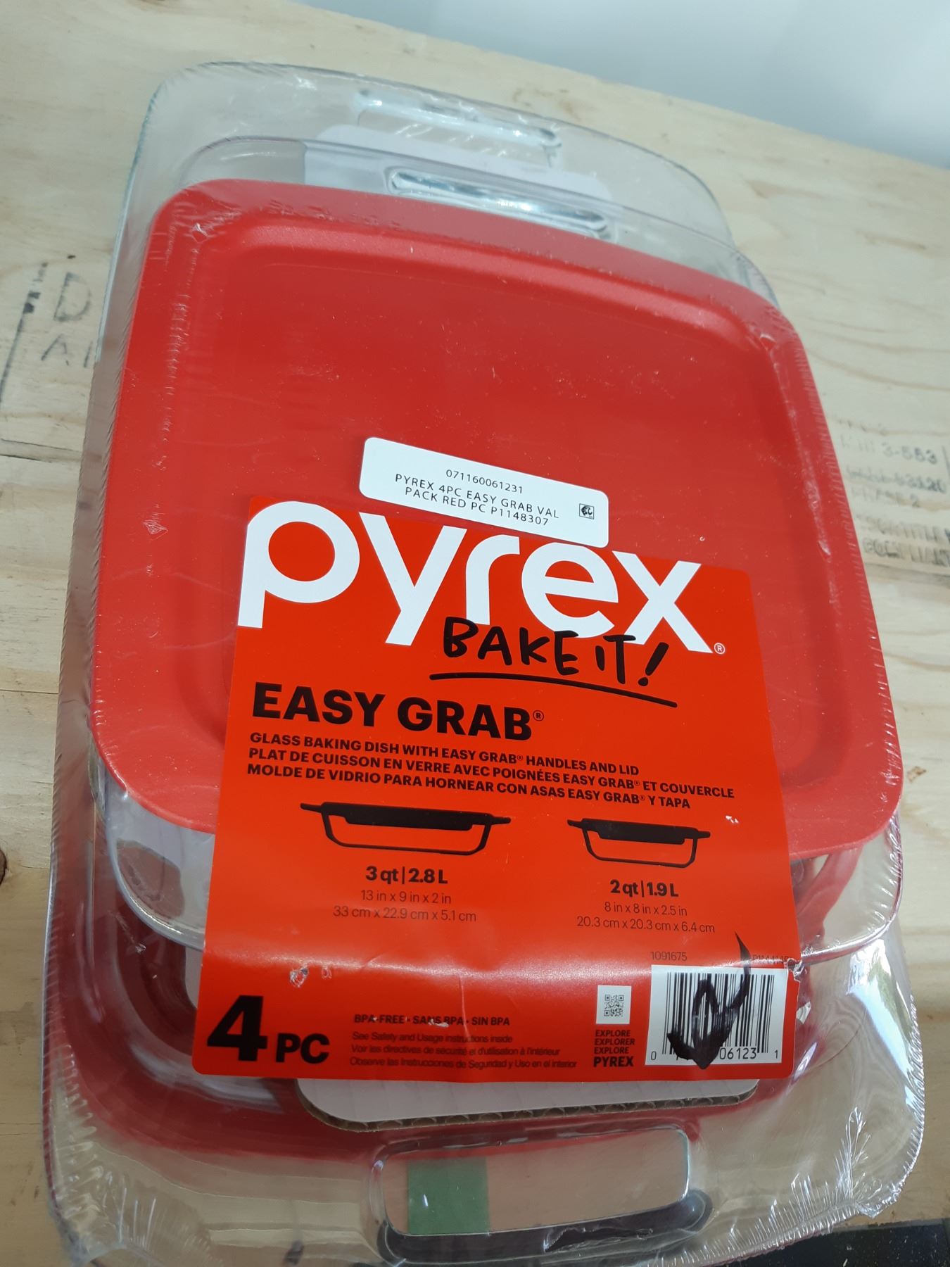 Set of 2 Pyrex bakers lids are cracked. Candle, ceramic bowls and food storage containers. Pickup at 10 am