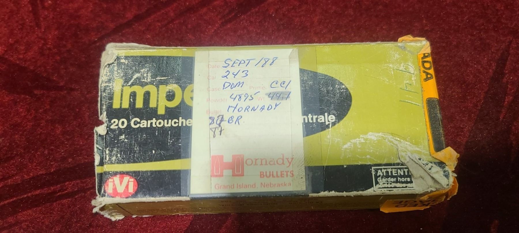 QTY20 .243 HAND LOADS CCI PRIMER 4895 POWDER AND 87GR