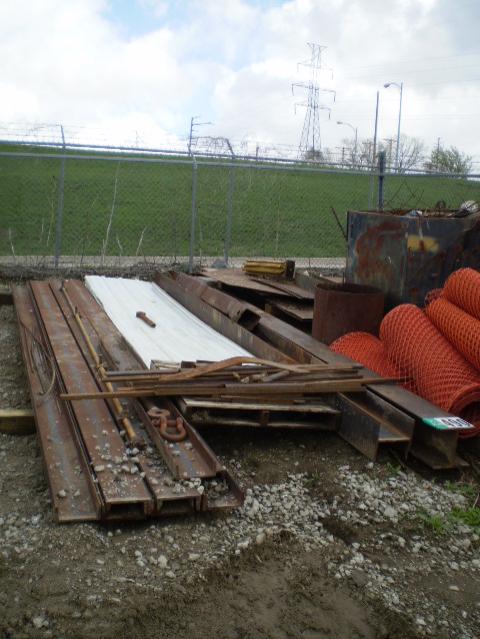 QUANTITY OF MISC FLAT METAL, H-BEAM, CHANNEL IRON & SCRAP BIN CONTAINER