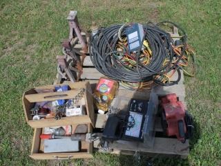 QUANTITY OF NEW LIGHTS, WRENCHES, SANDERS, WELL METER, PULLER, CAR STANDS, HEAVY CORD