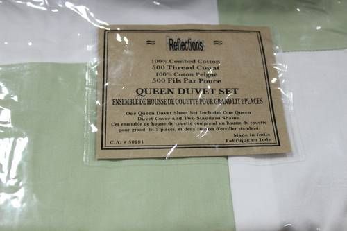 QUEEN SIZE 500 THREAD COUNT WHT AND GRN CHECKERED
