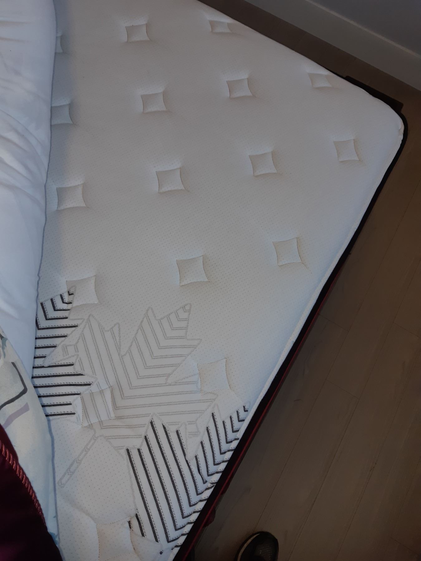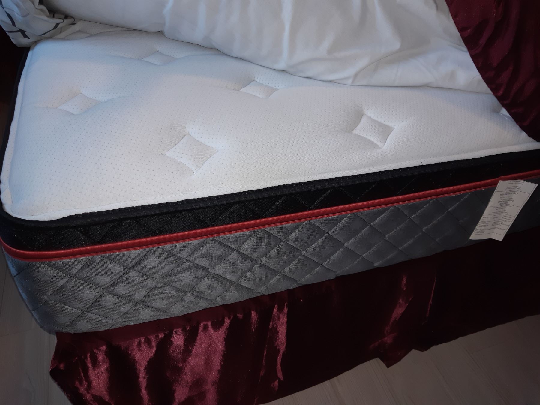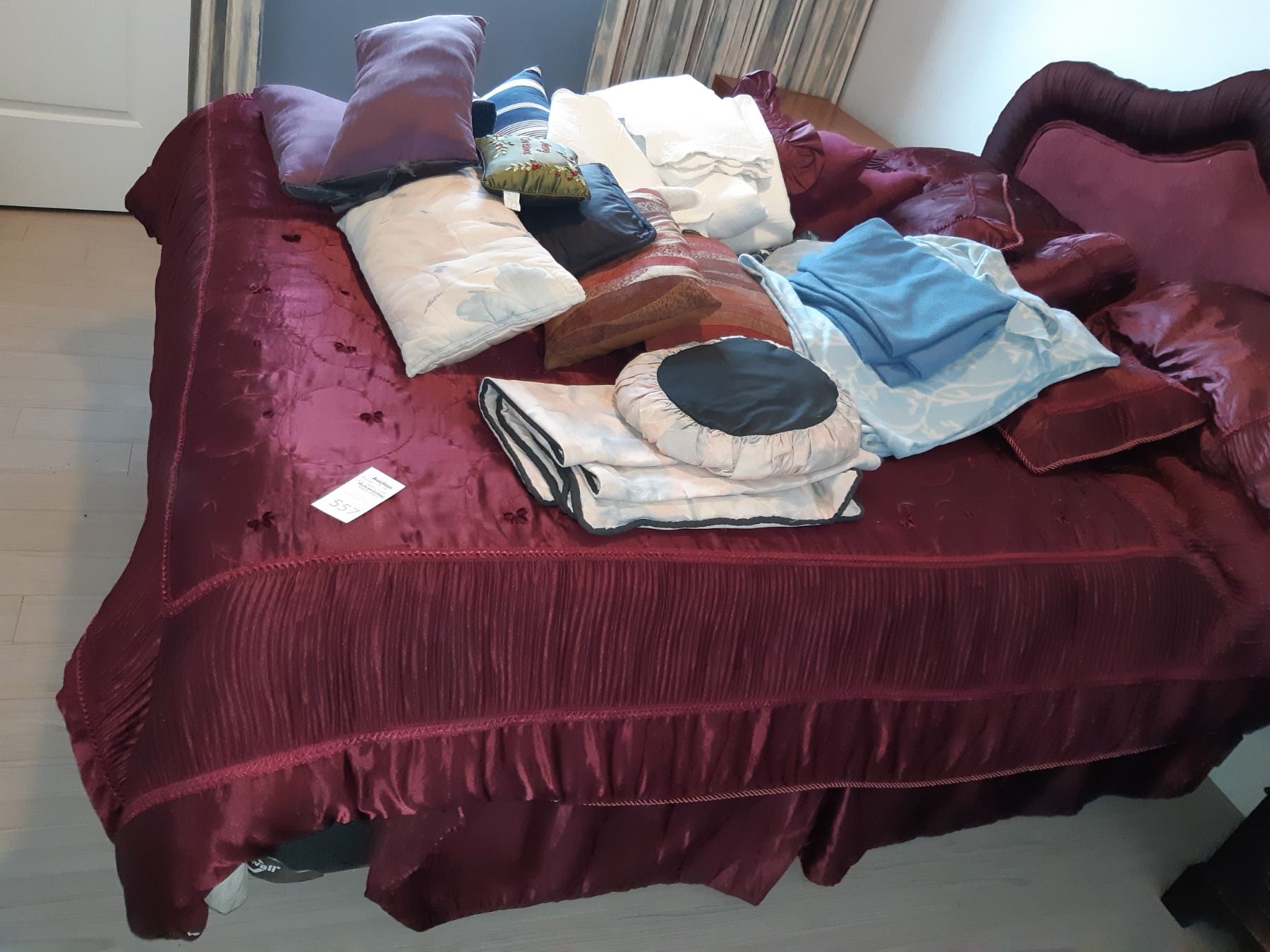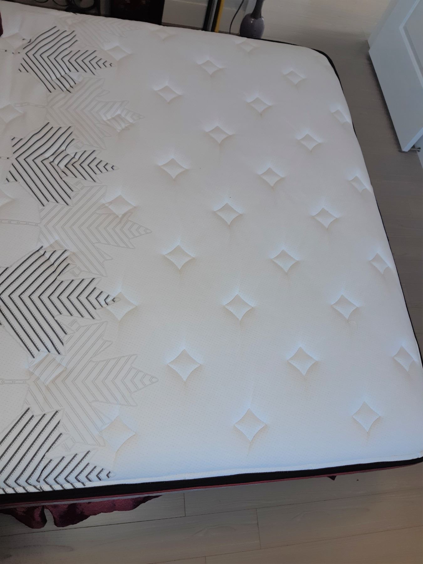 Jasper True North box spring & mattress and an assortment of Queensize bed linens Pickup at 10 am
