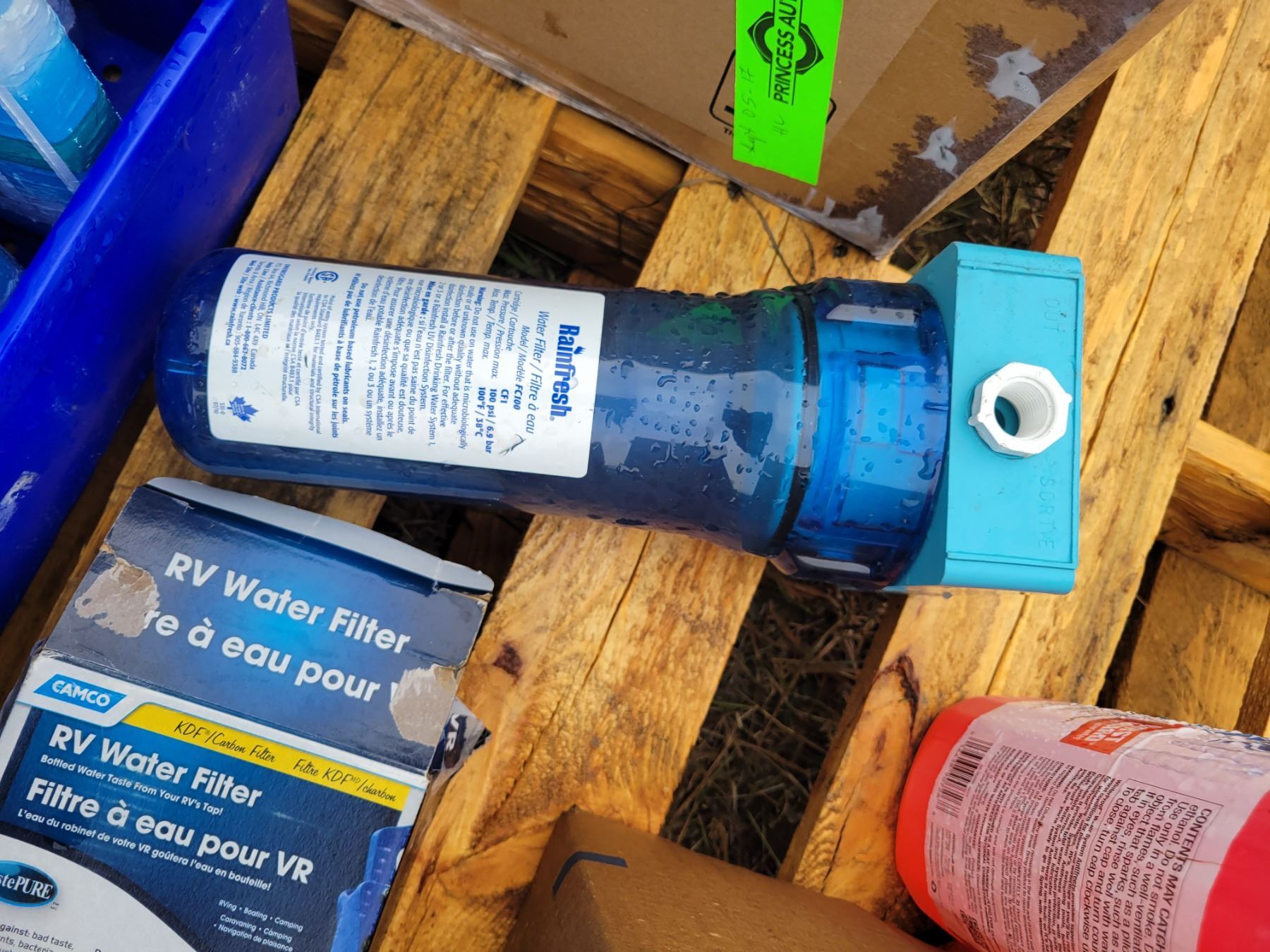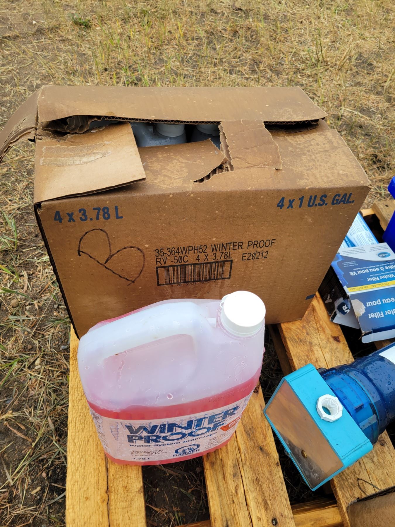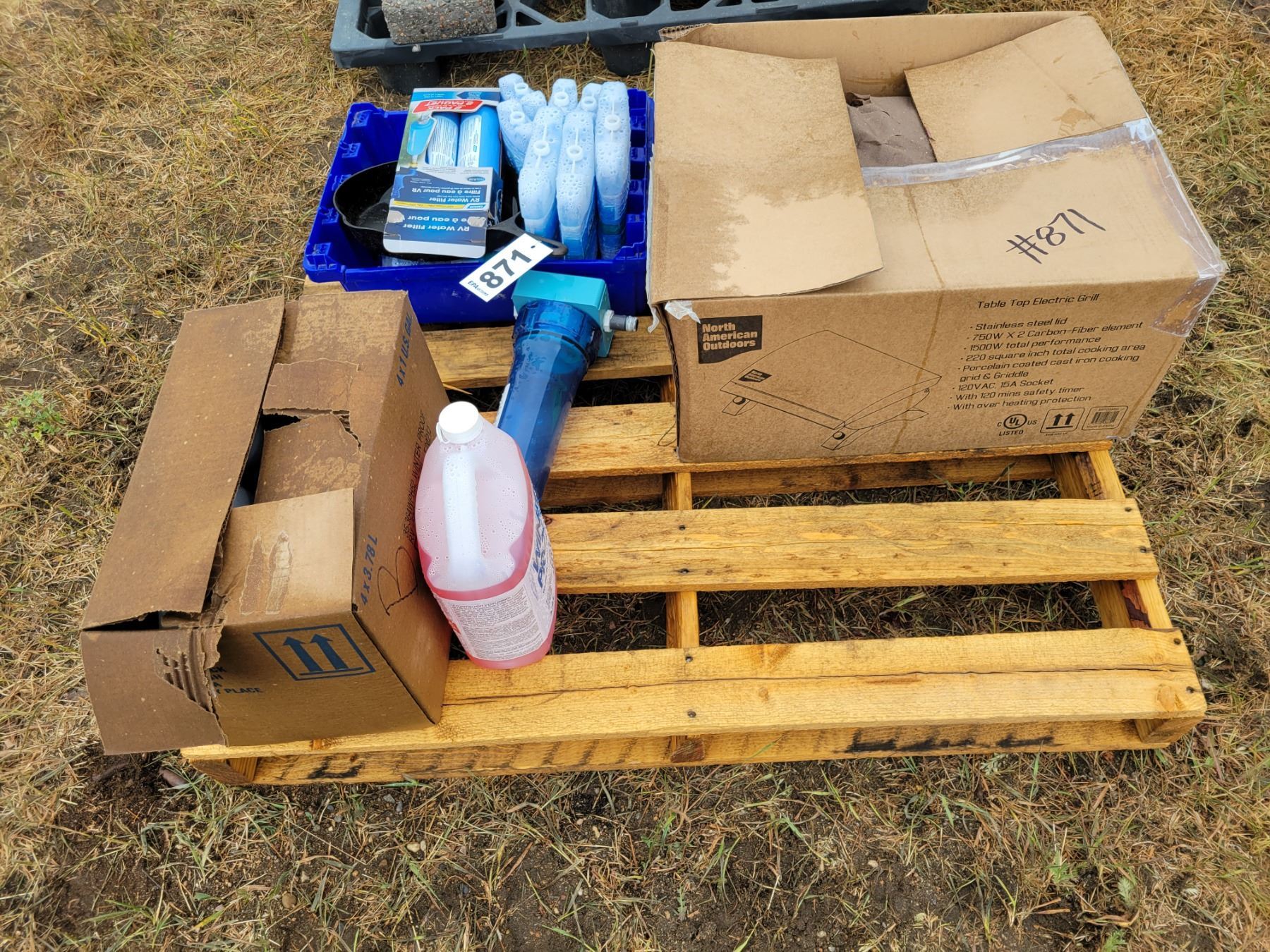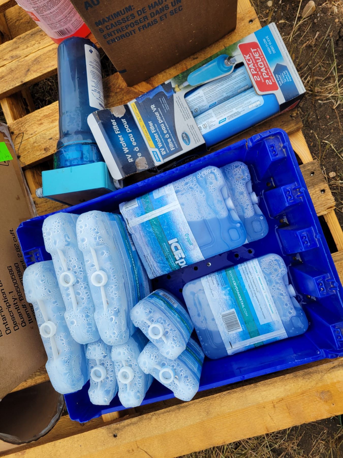 Qty of RV parts, water filter, ice packs, propane elec.grill, antifreeze etc.