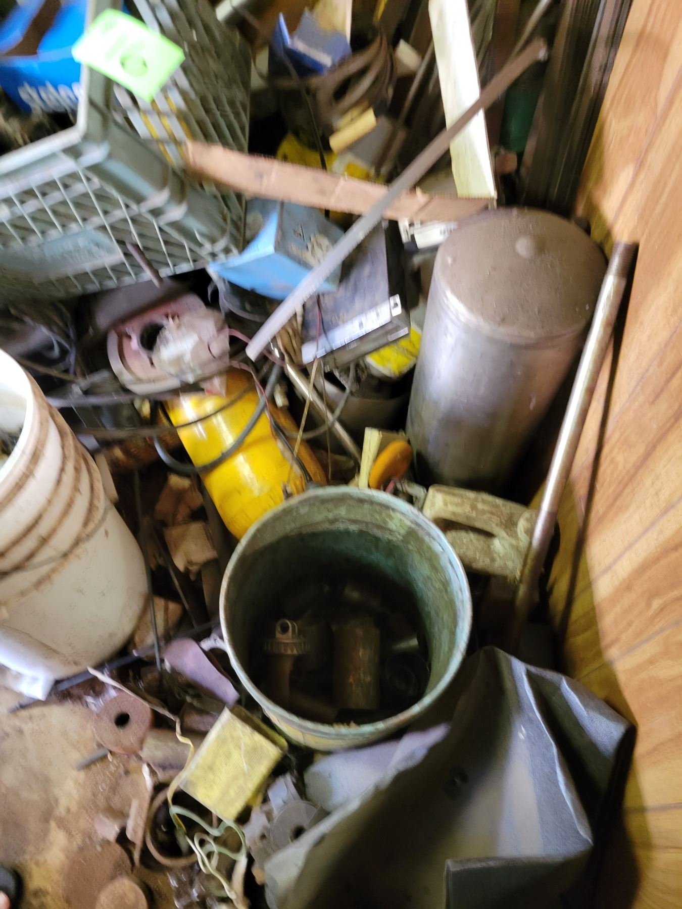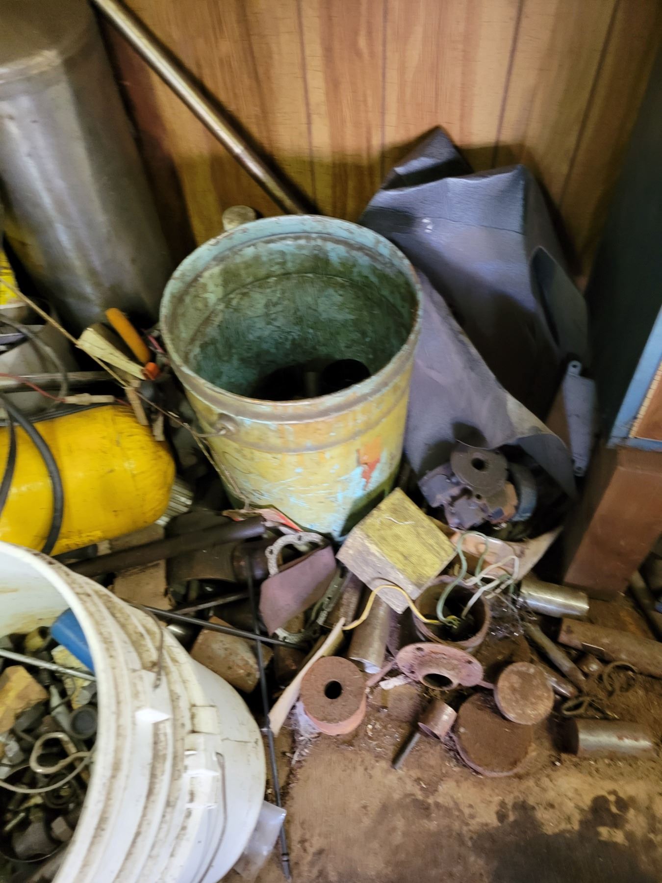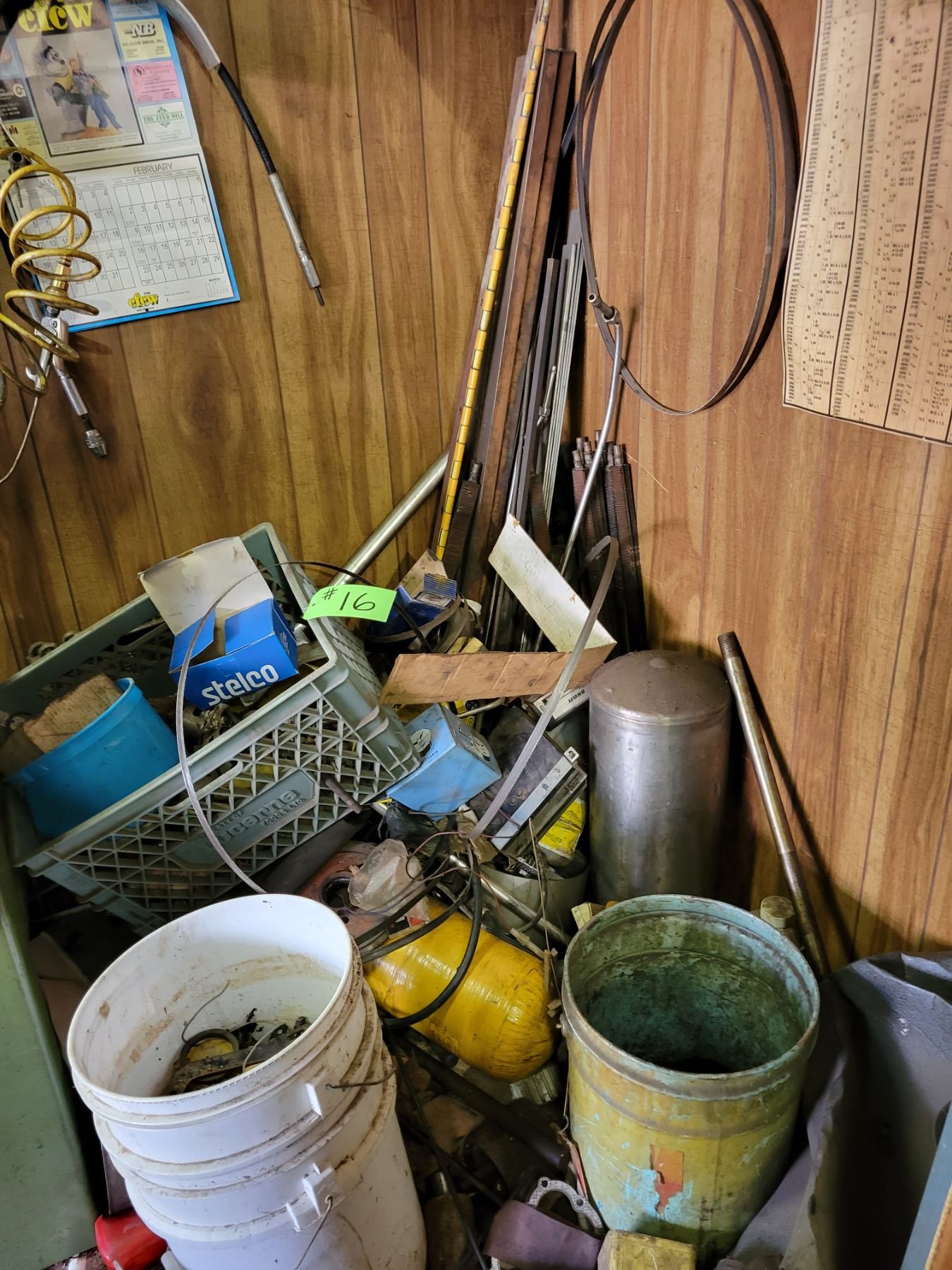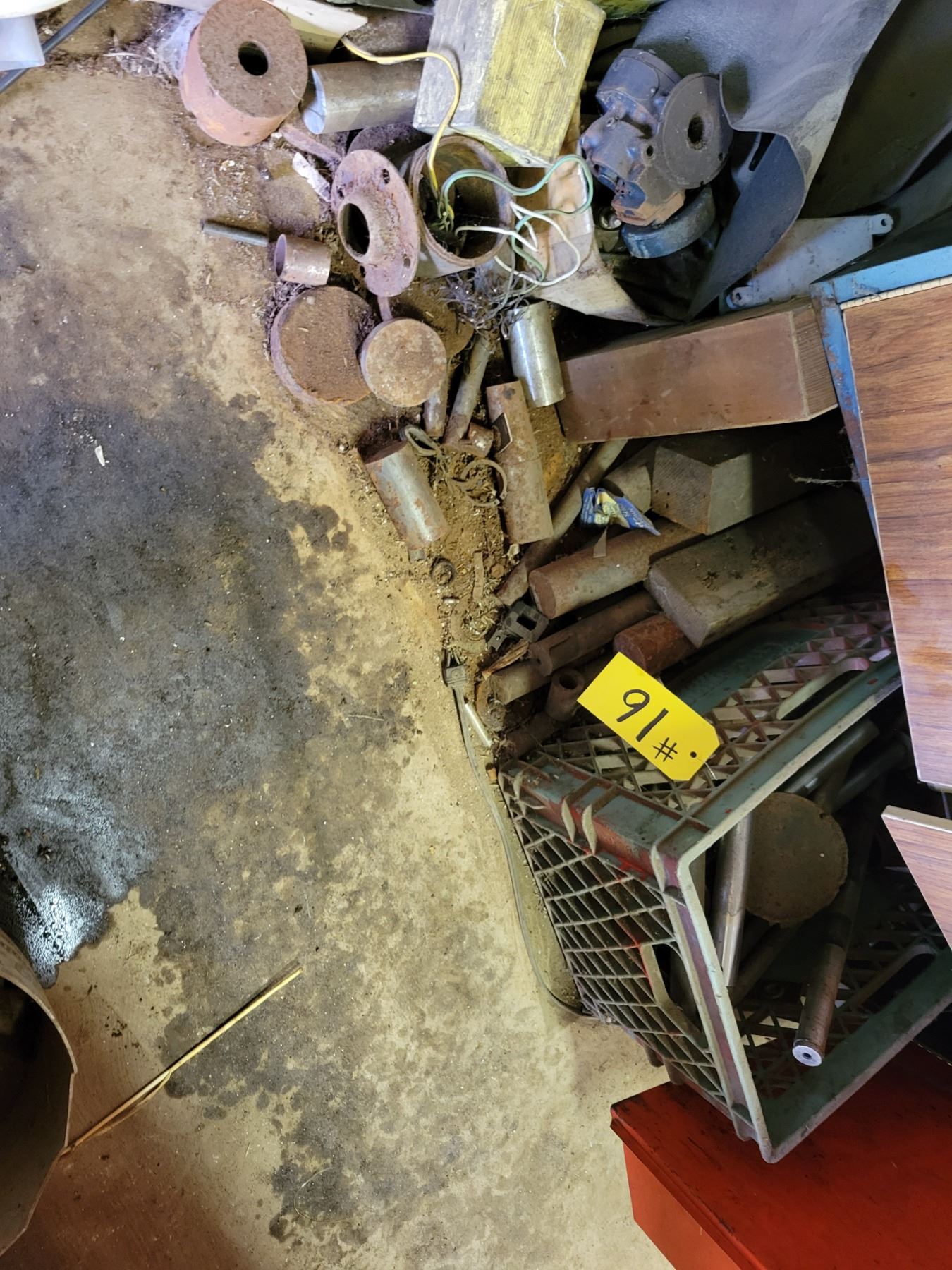 Qty of scrap iron in corner of garage; scrap metal, raw bar material, pipes etc. (Not to be loaded until July 20th of removal, due to small yard, buyer responsible to load)