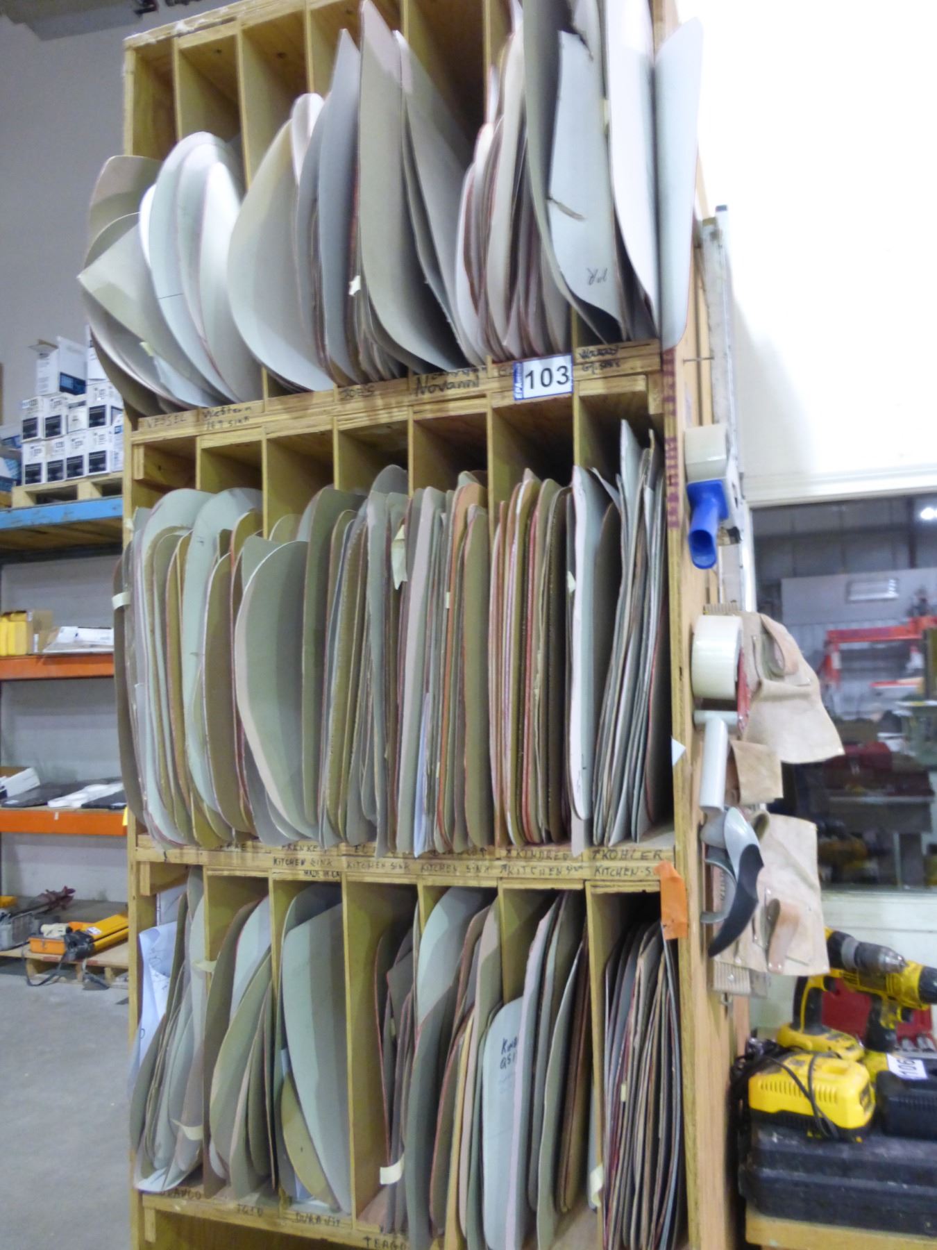 Qty of sink cut-out templates and shelf unit, 31" x 38.5" x 98" H