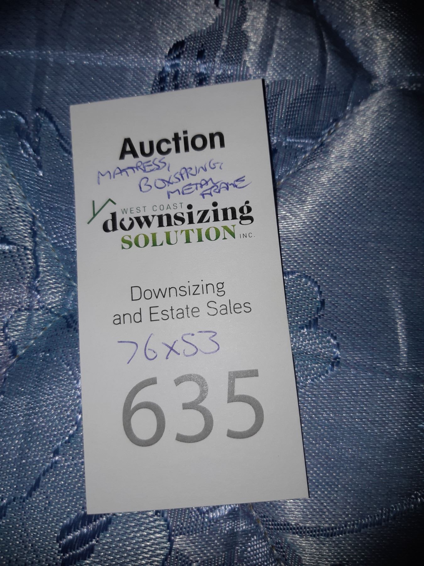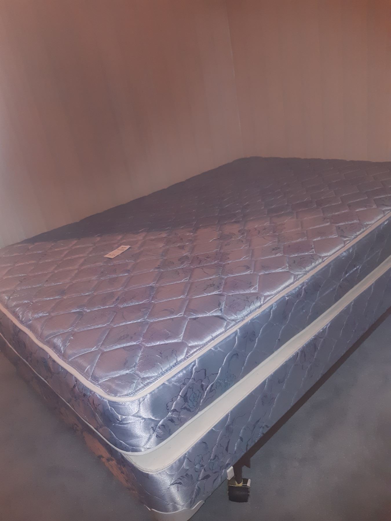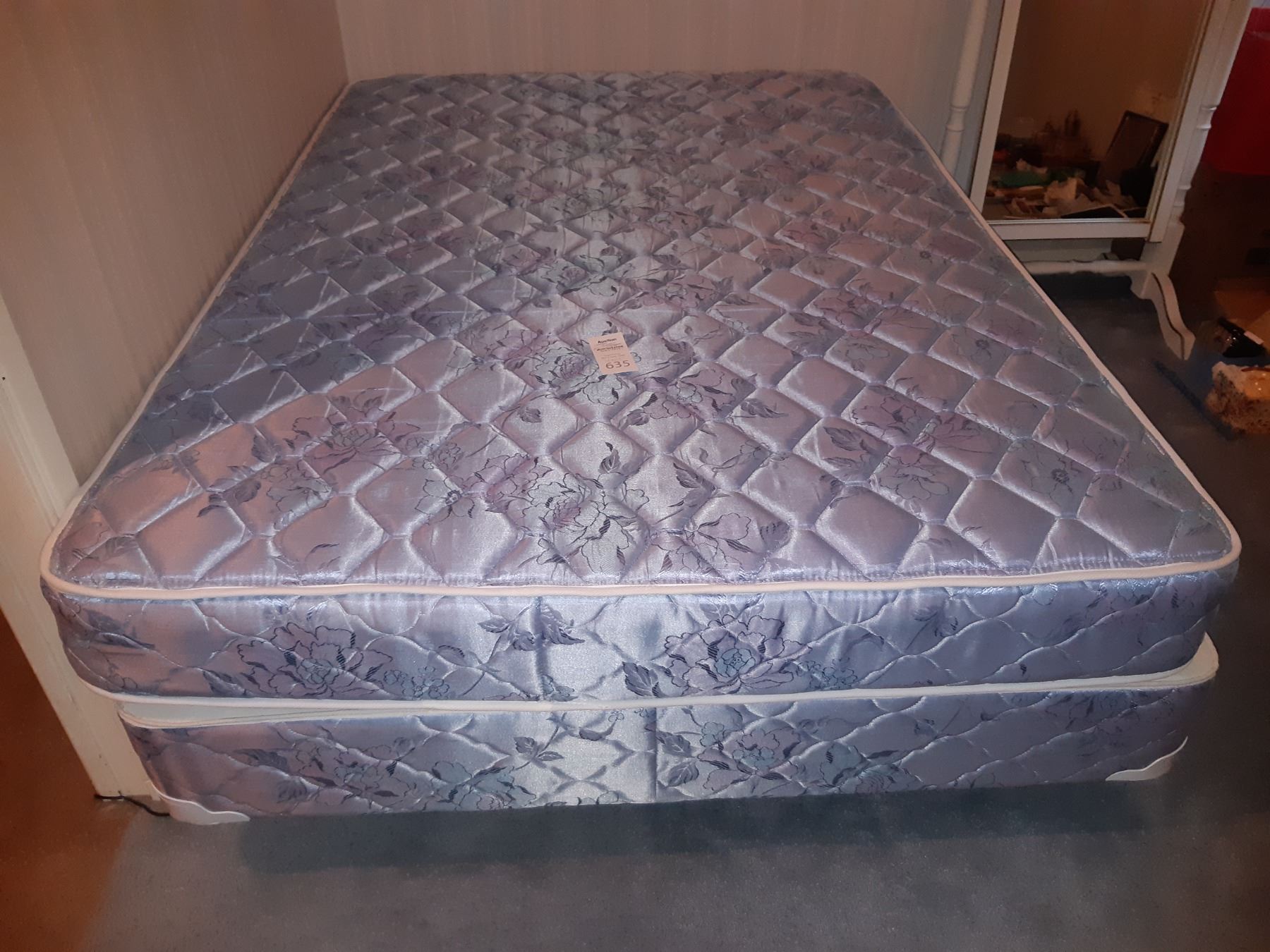 Queen size box spring, mattress and frame. 76x53. Pickup at 1:00 pm