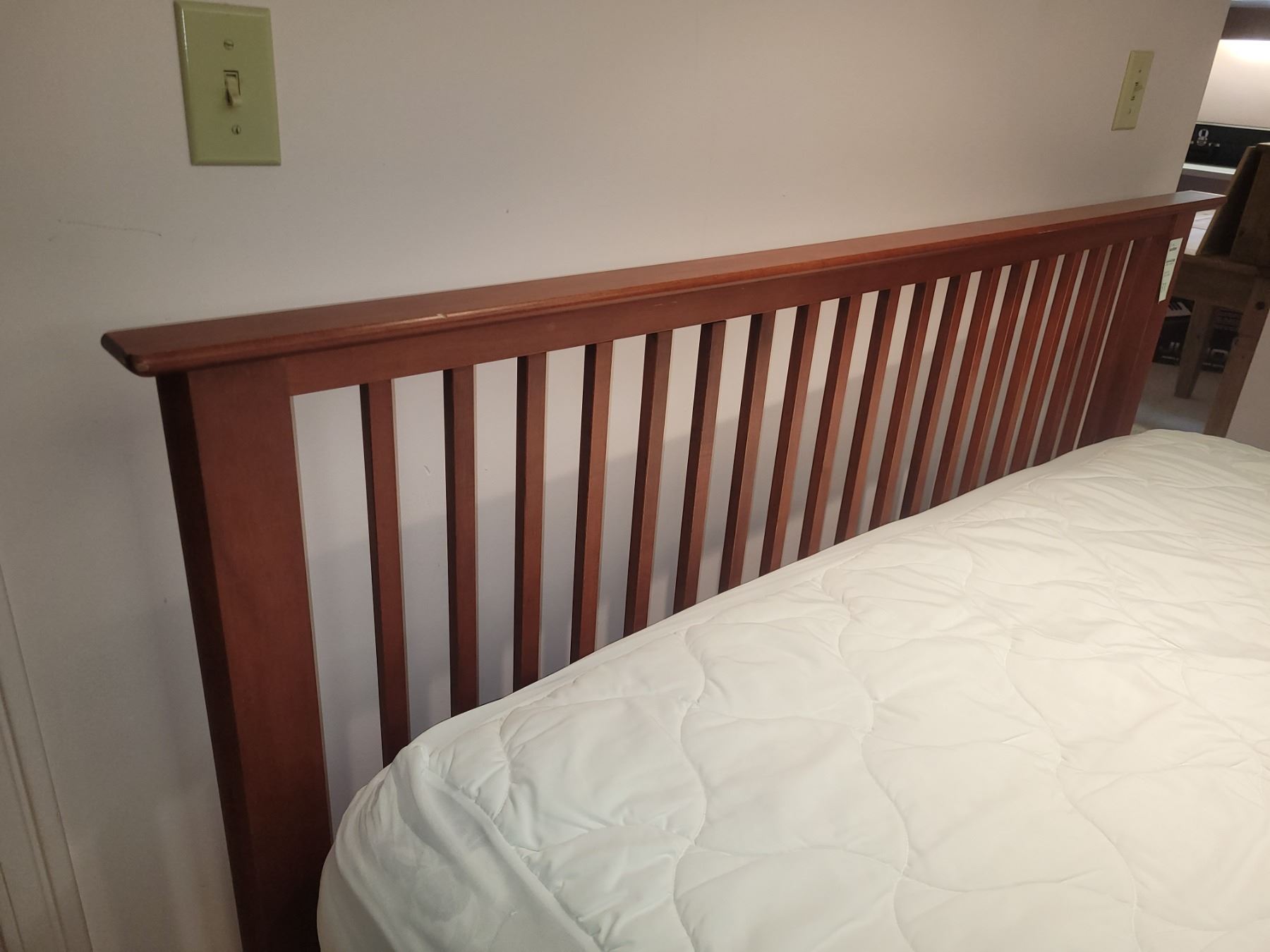 Wood head and footboard and side rails only, 65x44. Not included, mattress & boxspring Bring tools to take apart. Pick up 11 am