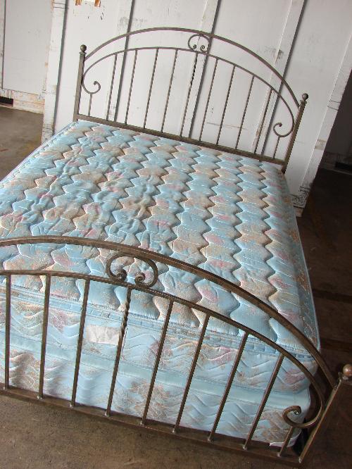 Queen size iron bed, headboard,footboard,mattresses available if you would like them