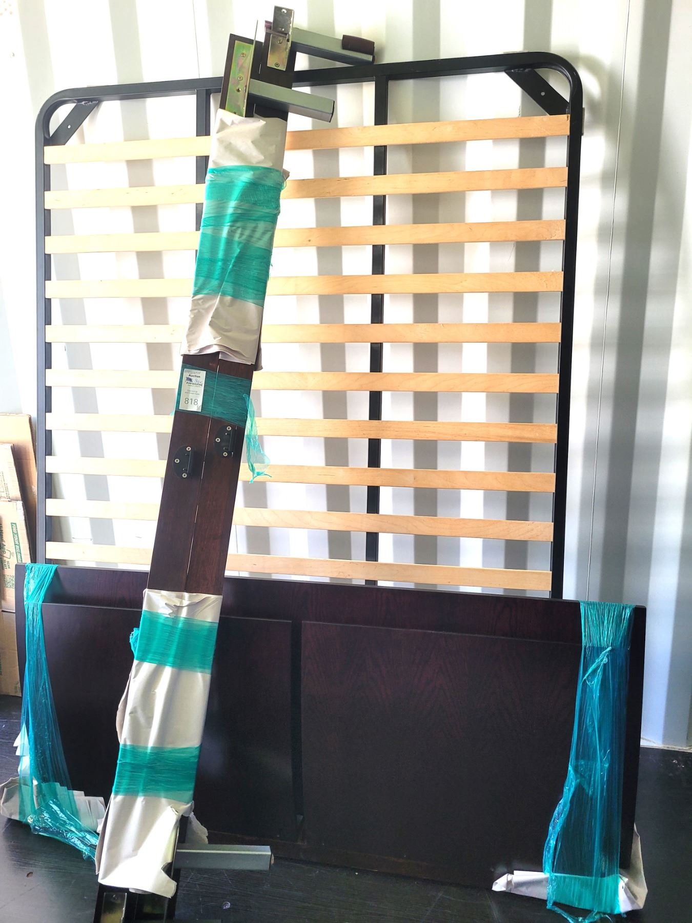 Headboard, footboard, side rails and base. (No mattress) pickup at 11 am