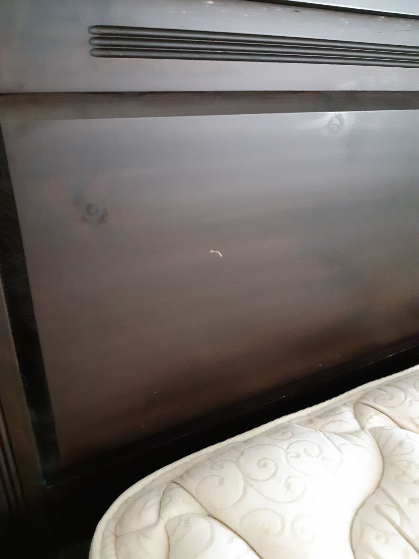 Queen Size Bed frame, mattress and box spring 64x85x46 note frame has some scratches. Bring help to remove and pickup at 1 pm