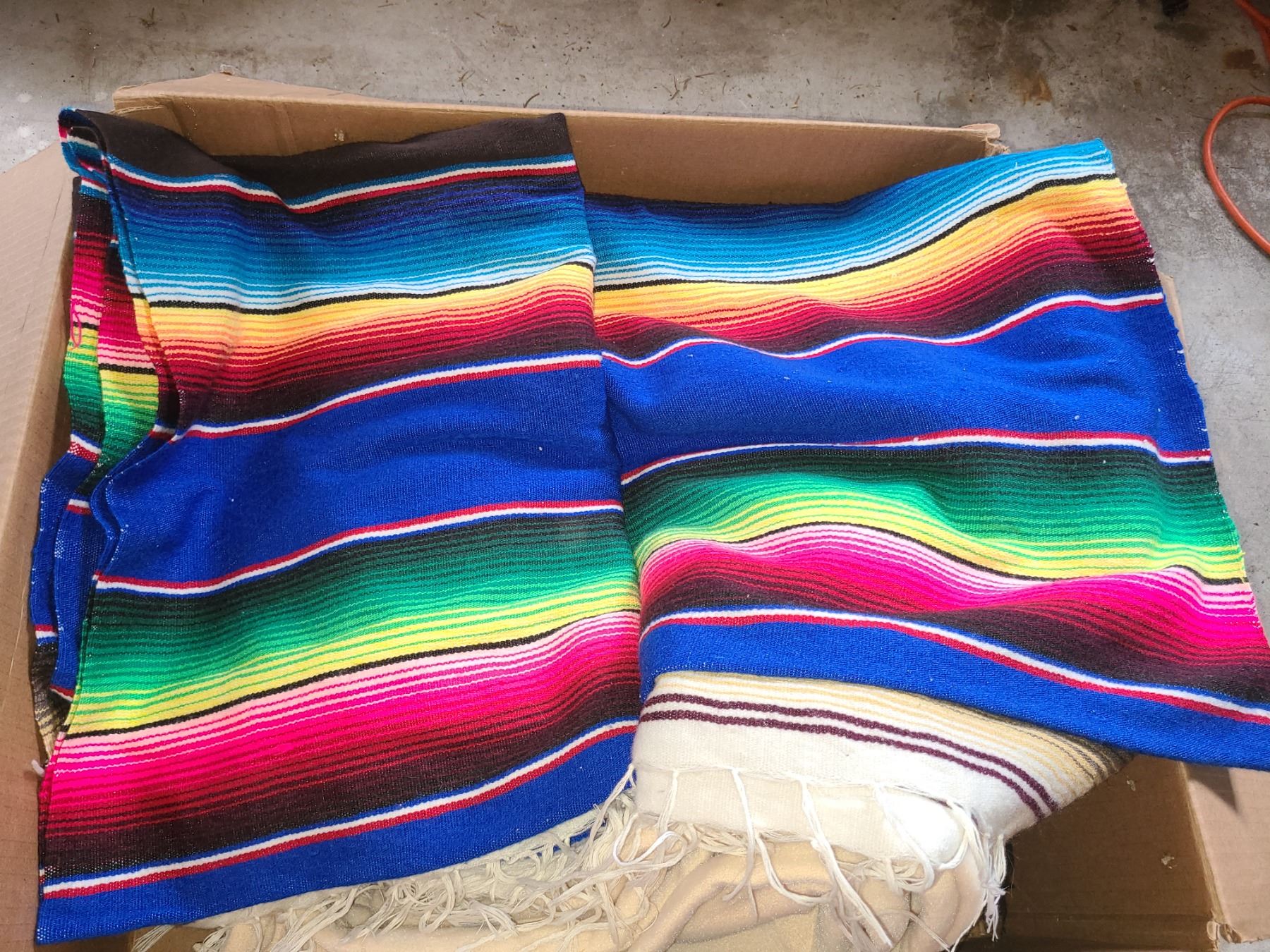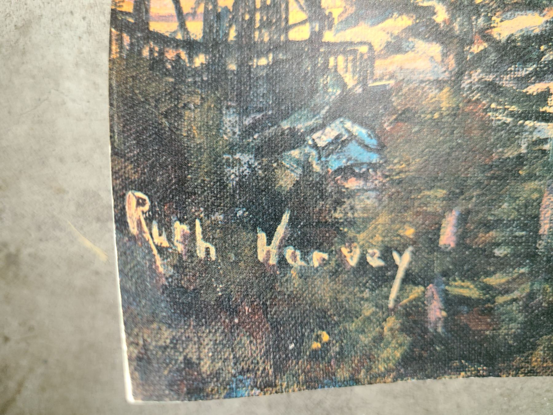 Antique piano cover, unframed prints by Hardy, quilt, pickup 9am