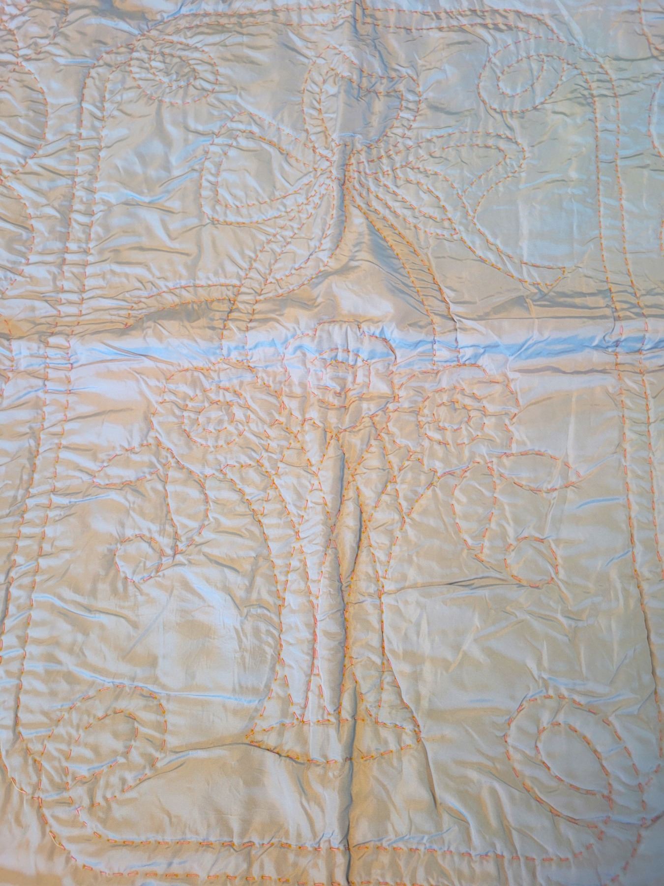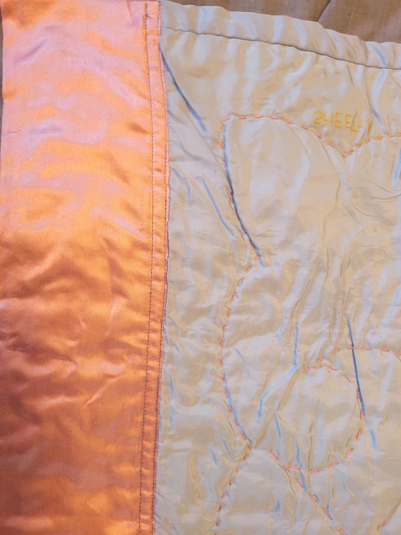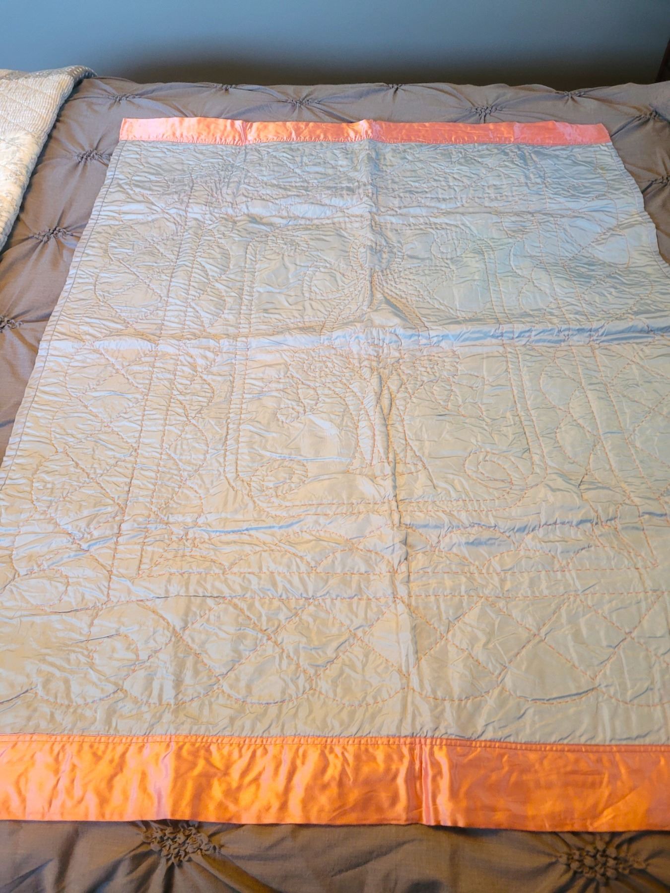 Hand made quilted satin blanket 37x40 Pickup at 9 am