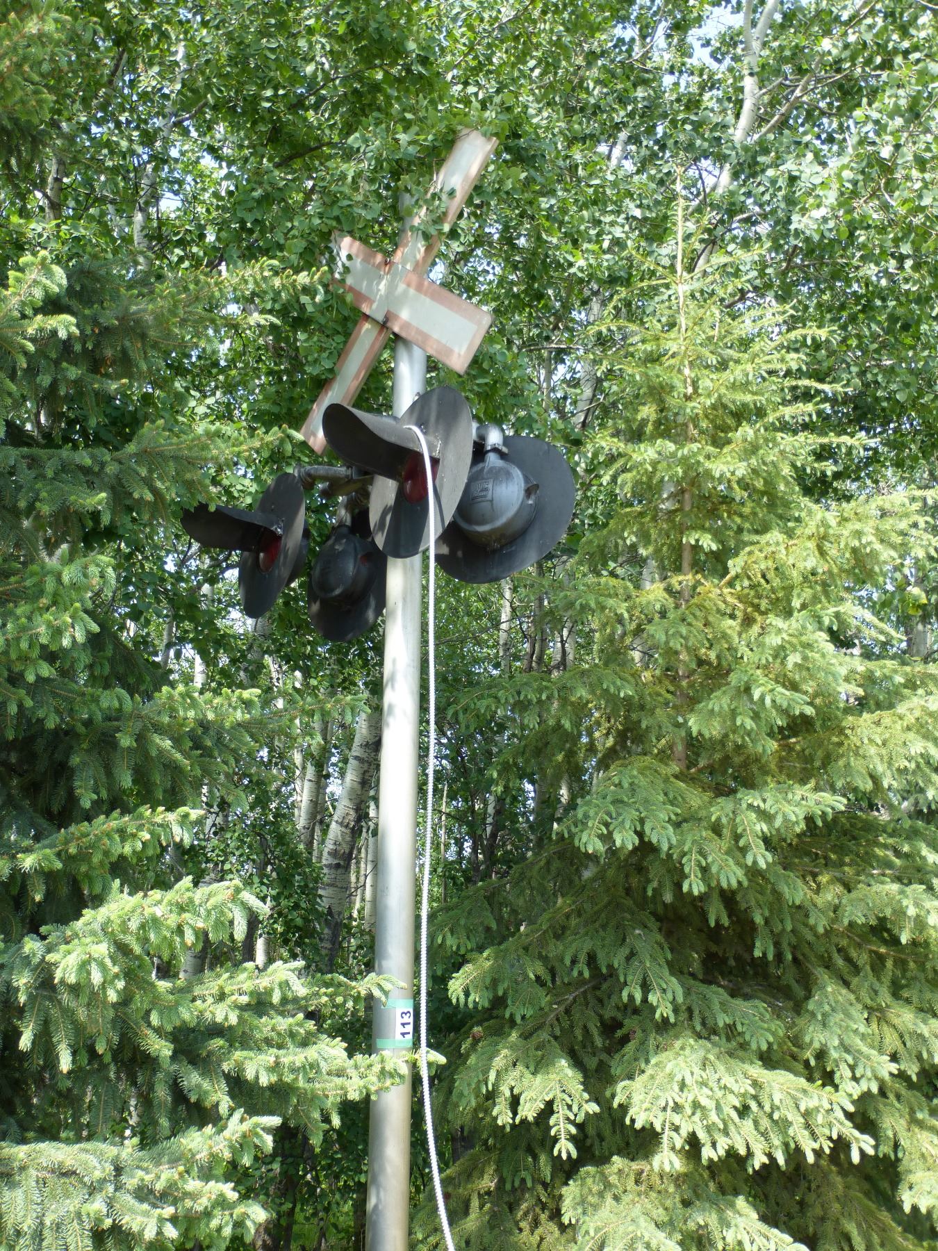 RAILROAD CROSSING SIGN POST WITH LIGHTS