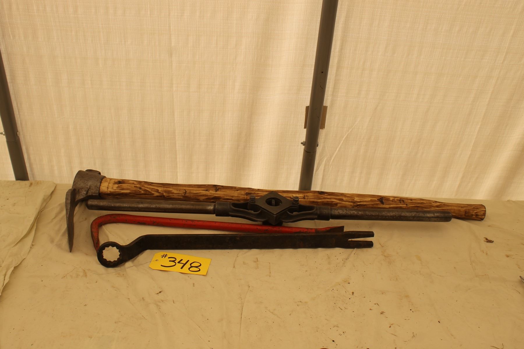 RAILROAD PICK AXE, PIPE THREADER, GOOSE NECK, Wrench for ADJUSTING CONCAVES ON COMBINE