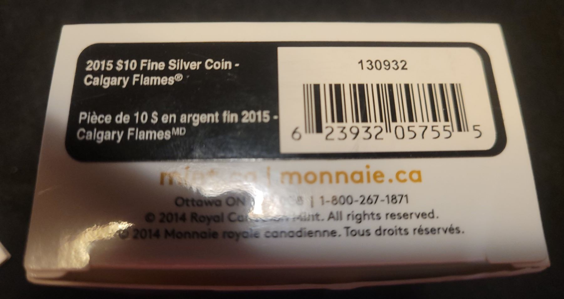 Calgary Flames 2015 Fine Silver Coin. Pickup at 9 am