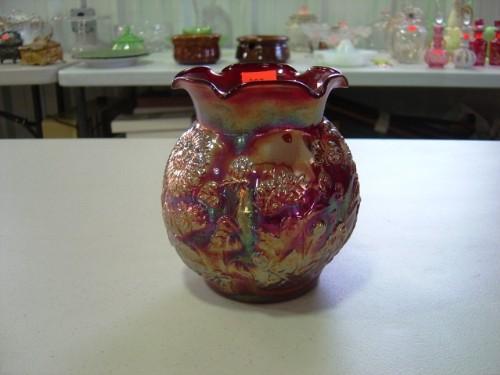 RED IRIDESCENT JAR/VASE WITH SUNFLOWERS