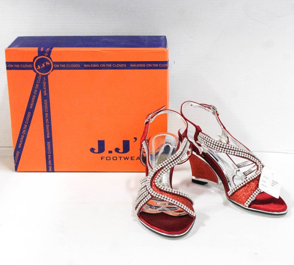 RED/ RHINESTONE STUDDED HIGH HEEL J.J'S FOOTWEAR