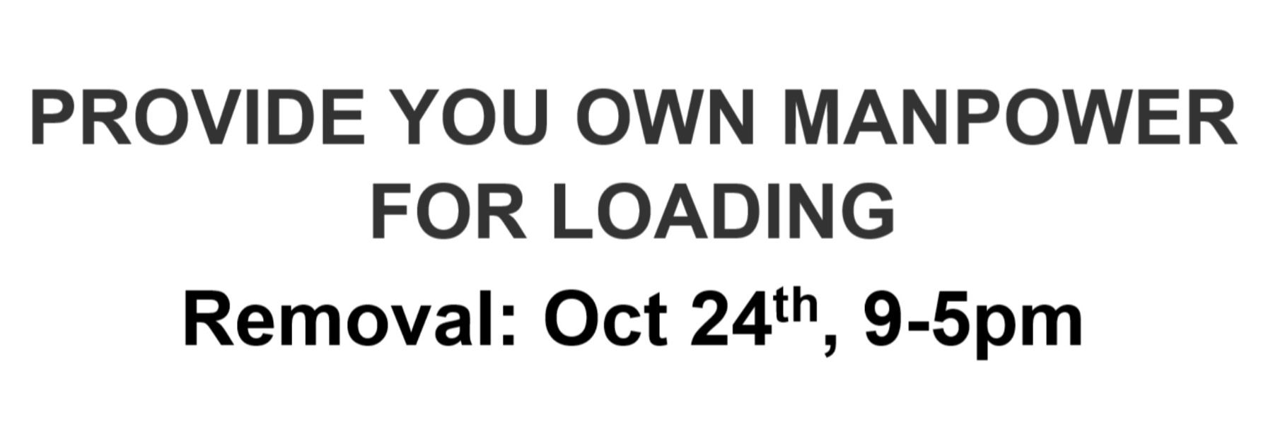 REMOVAL: Oct 24th, 9-5pm. Buyer Responsible to Load