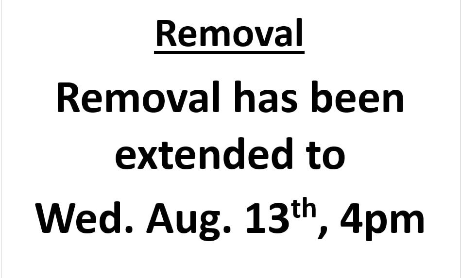 Removal has been extended to Wed. Aug. 13th, 4pm