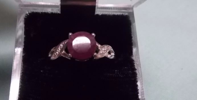 RING - 1.6CT RED RUBY AND WHITE SAPPHIRES IN STERLING SILVER SETTING - APPROX. RETAIL $500