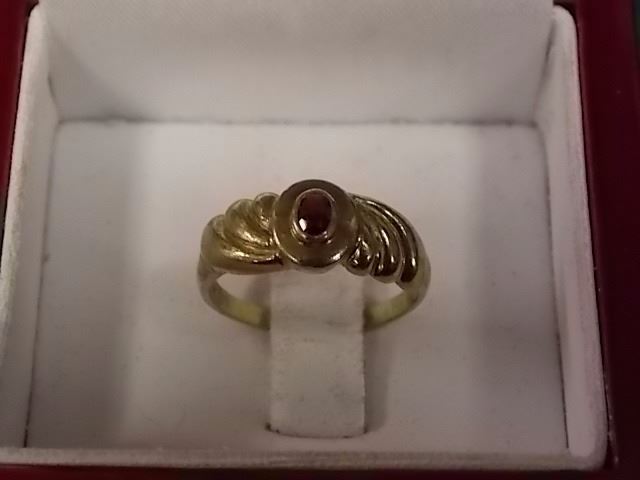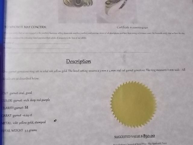 RING - 10KT YELLOW GOLD WITH SOLITAIRE .24CT OVAL FACETED GARNET GEMSTONE - BAZEL-SET - INCLUDES CERTIFICATE $850
