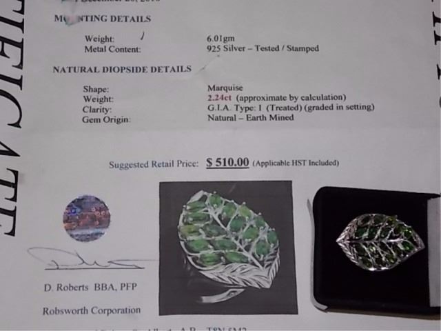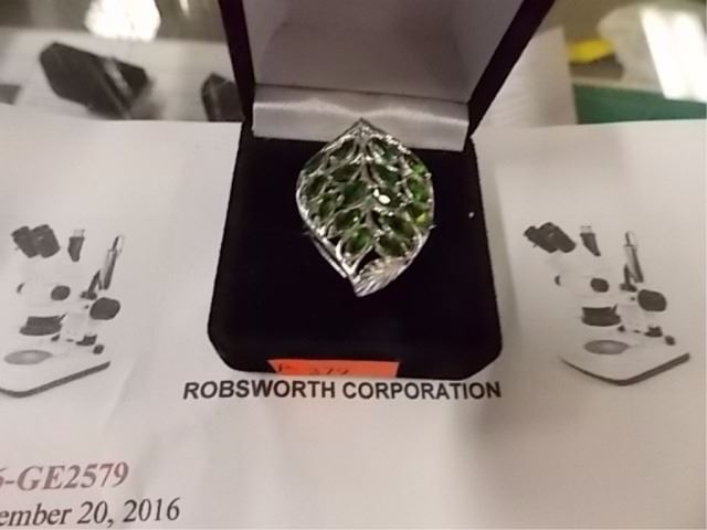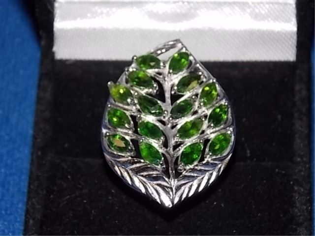 RING - 2.24TCW - MULTIPLE BRILIANT GREEN CHROME DIOPSIDE GEMSTONES IN STERLING SILVER LEAF DESIGNED SETTING - - INCLUDES CERTIFICATE - RETAIL ESTIMATE $510