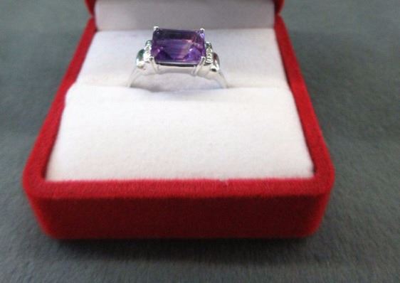 RING - 2.28CT EMERALD FACETED LAVENDAR COLOR AMETHYST & 2 DIAMONDS IN STERLING SILVER SETTING - INCLUDES CERTIFICATE $350