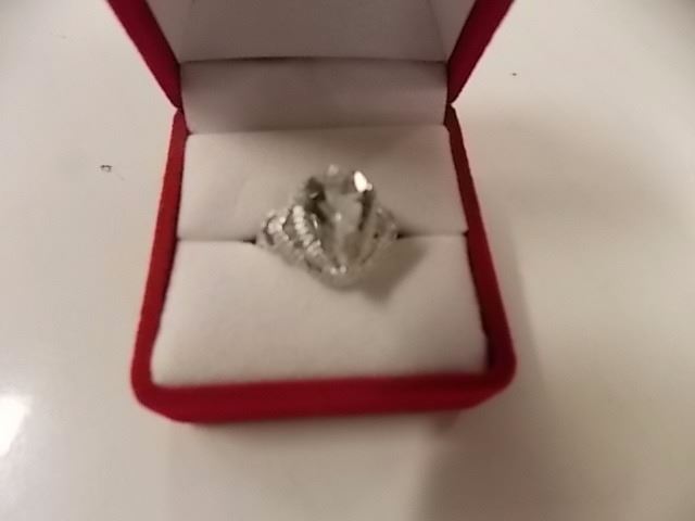RING - EXTRA LARGE 4CT PEAR FACETED GREEN AMETHYST & 2 DIAMONDS IN STERLING SILVER SETTING - INCLUDES CERTIFICATION $400