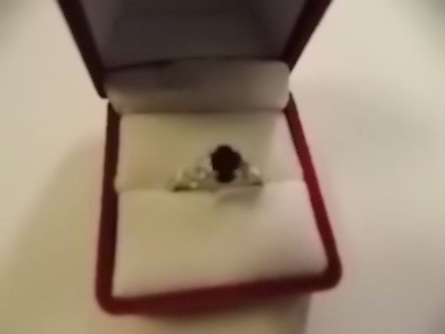RING - LARGE 1CT OVAL FACETED GARNET & 2 DIAMONDS IN STERLING SILVER SETTING - RETAIL ESTIMATE $300