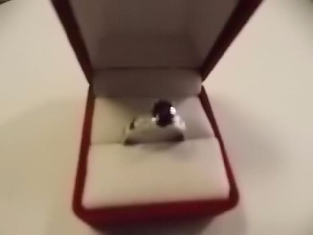 RING - OVAL FACETED 1.5CT AMETHYST & 2 DIAMOND RING IN STERLING SILVER SETTING - RETAIL ESTIMATE $350