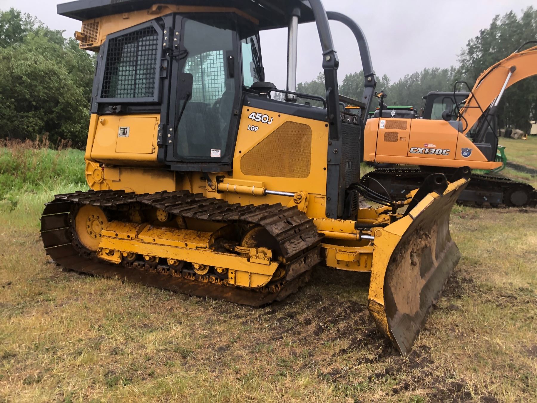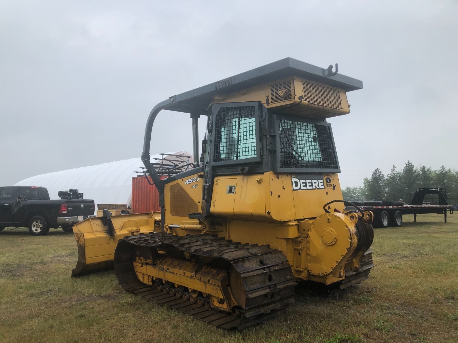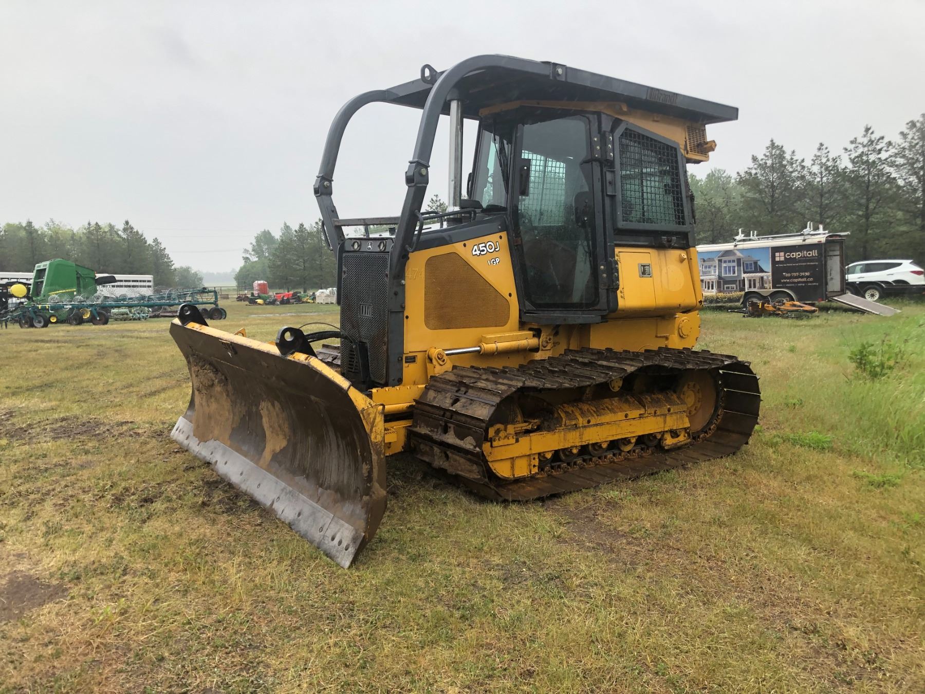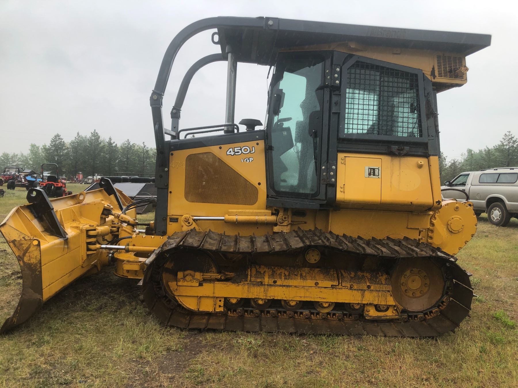 RK 2006 JD 450J LPG Cat - 6 way, 10 ft Dozer, Cab, winch, wide pad, 7628 hrs c/w new engine installed under warranty at 3500 hrs, SN. T0450JX129717, selling c/w new 10 ft brush rake