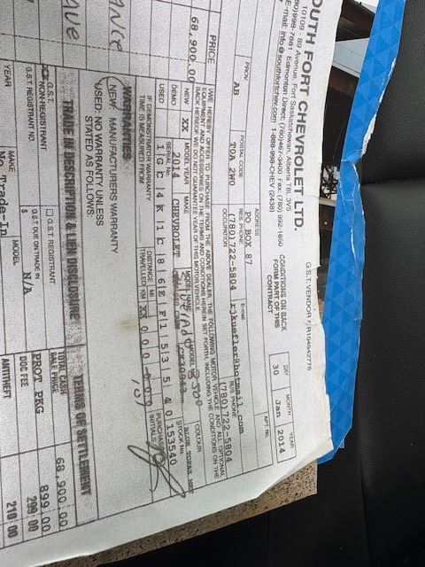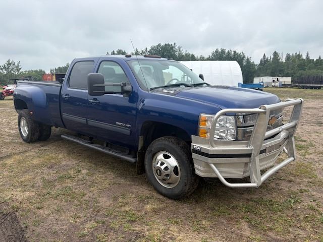 RK 2014 Chevrolet Silverado, 3500 dually Quad cab 4x4, diesel, auto with 45,113 orig. kms, sun roof, leather, full load c/w 5th wheel ball & Ali Arc Alum. Front bumper, box liner, one owner, a few scratches & minor dents on the rear bumper SHARP, SN. 1GC4K1C86EF153540