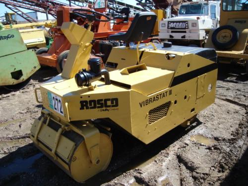 1995 ROSCO VIBRASTAT III TANDEM VIBRATORY ROLLER, s/n 33753: KUBOTA D600B DIESEL ENGINE, 36in. DRUMS, WATER SYSTEM, HYDROSTATIC DRIVE (SERVICE RECORDS)