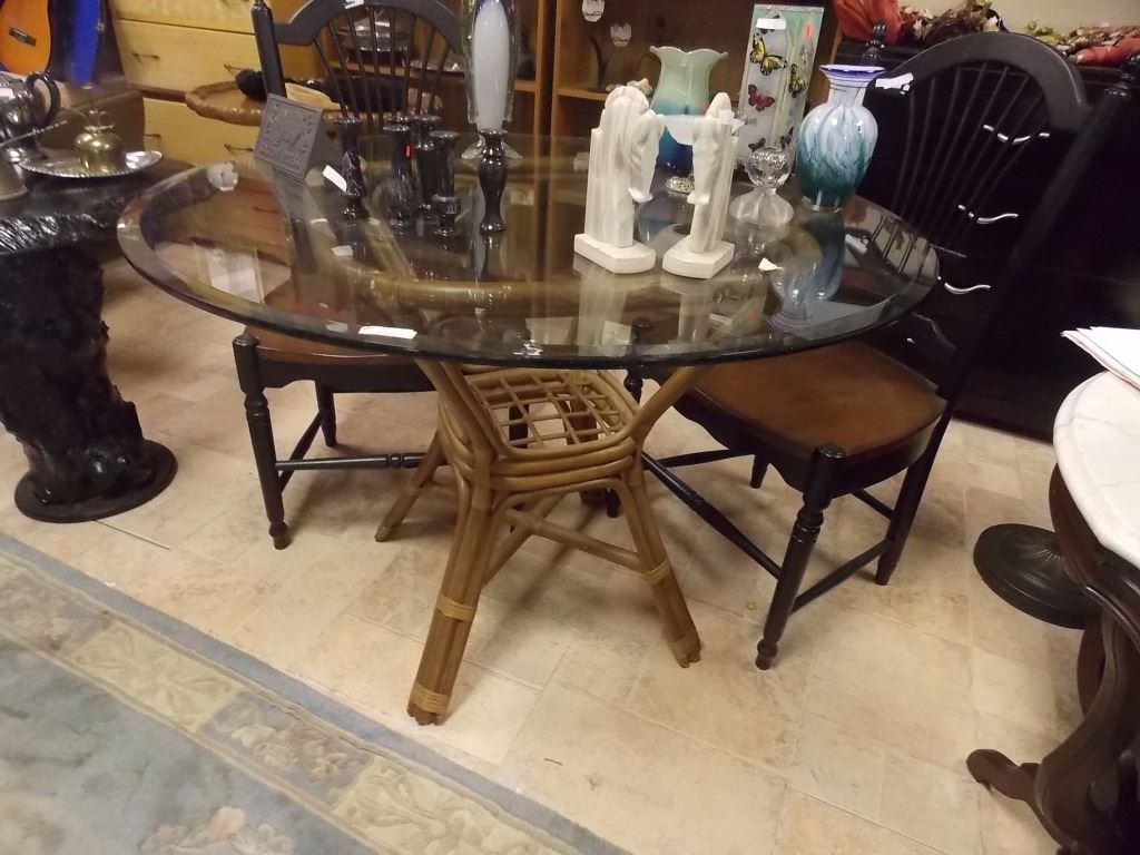 ROUND GLASS TOP AND WICKER SIDE TABLE