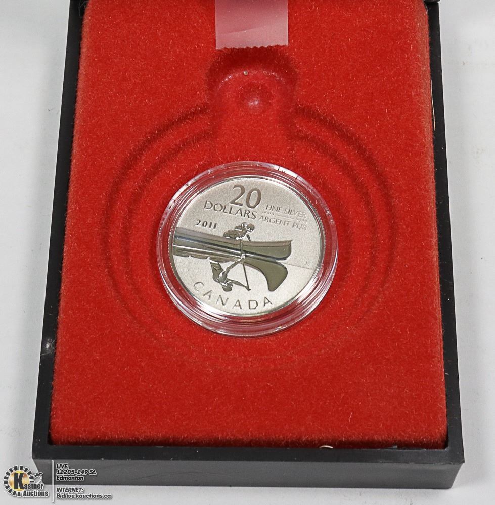 COMMEMORATIVE $20 COIN - CANOE (99.99% PURE SILVER COIN) - CURRENCY