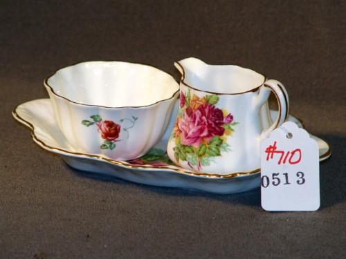 ROYAL STUART BONE CHINA SUGAR & CREAMER ON PLATE