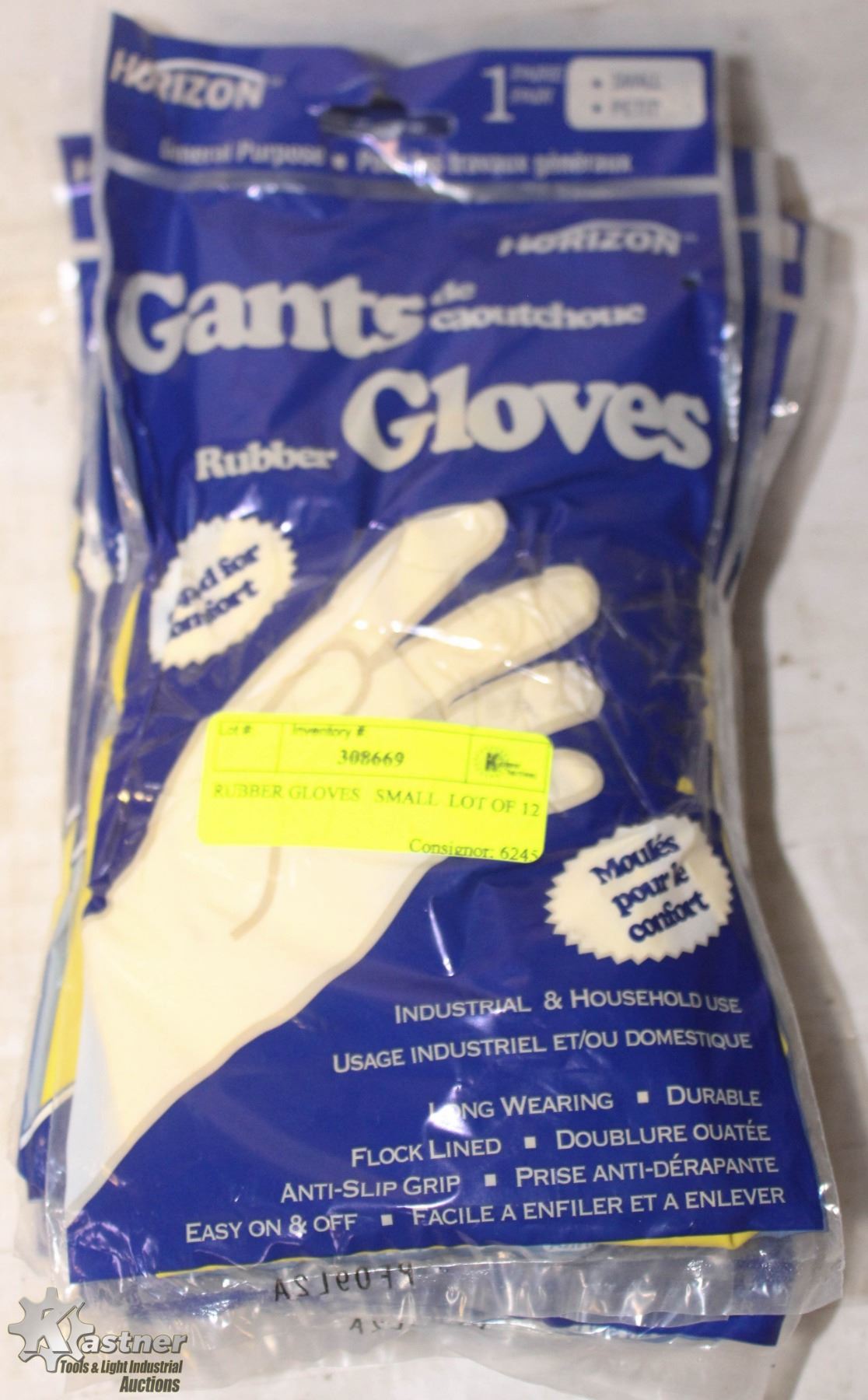 NEW, HORIZON BRAND RUBBER GLOVES, INDUSTRIAL, FLOCK LINED, ANTI-SLIP GRIP, EASY ON AND OFF, LOT OF 12