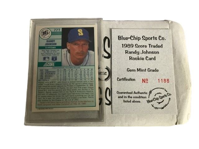 1989 Score #77T gem mint graded Randy Johnson Mariners rookie card.